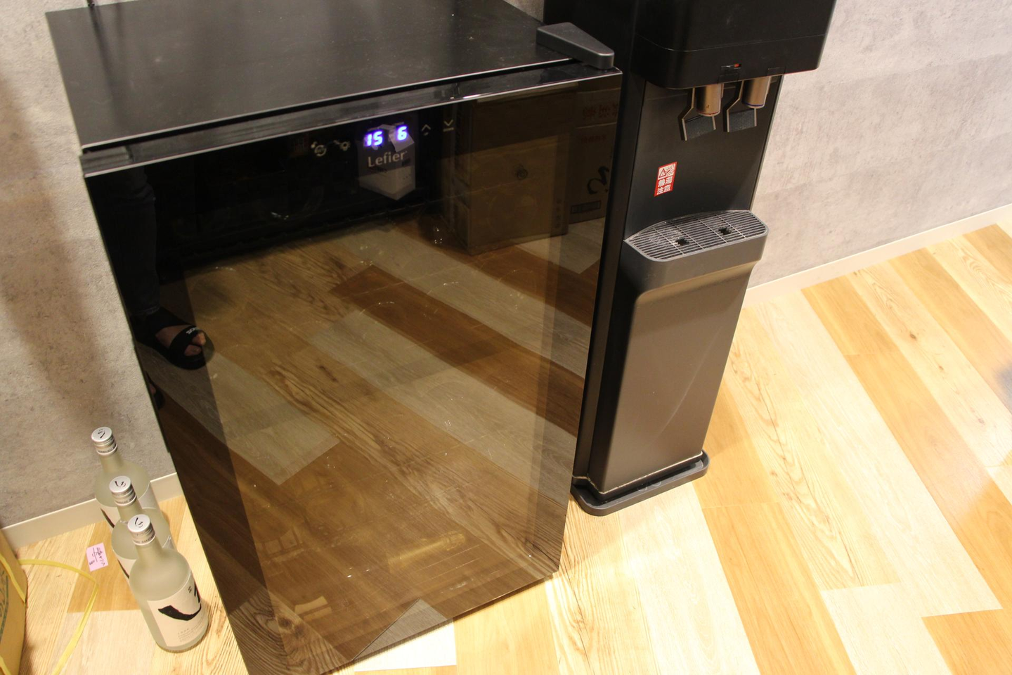 棚の下にはワインセラーが!隣に日本酒?焼酎?もあるじゃないか!!😆