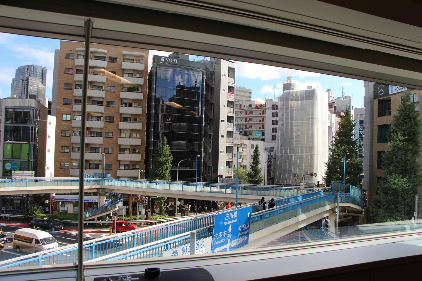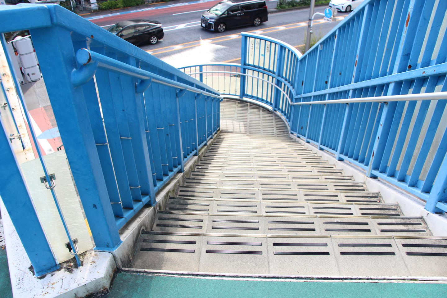 この左の歩道橋を渡っていくよ!(階段がおしゃれな気がするのは私だけ・・・?田舎者なのかな)