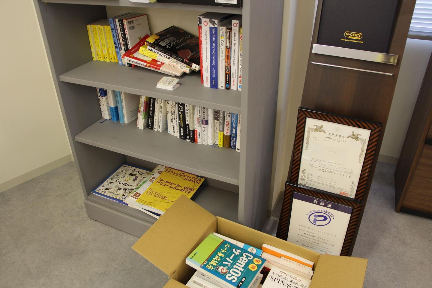 小さいけど本棚も(段ボール入りも)。