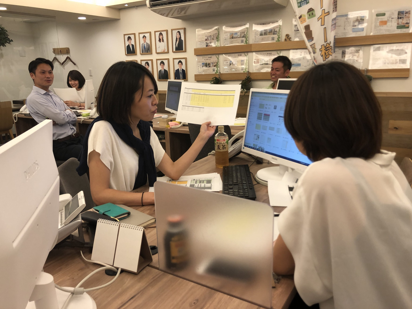 実際にご来店されるお客様を想定して先輩社員がお客様役になり、新人スタッフが営業として応対して、その応対を皆で確認してアドバイスをしていくというものです。