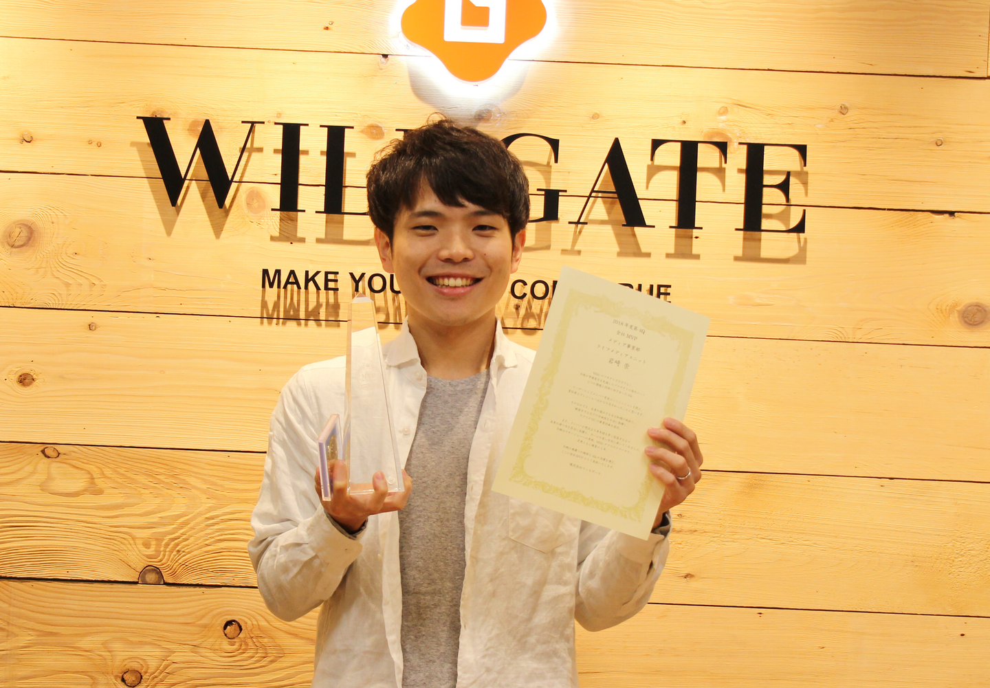ウィルゲートが大切にする7つの行動指針『WinG』を体現している社員に送られるWinG賞には商品開発の木内が選出されました。