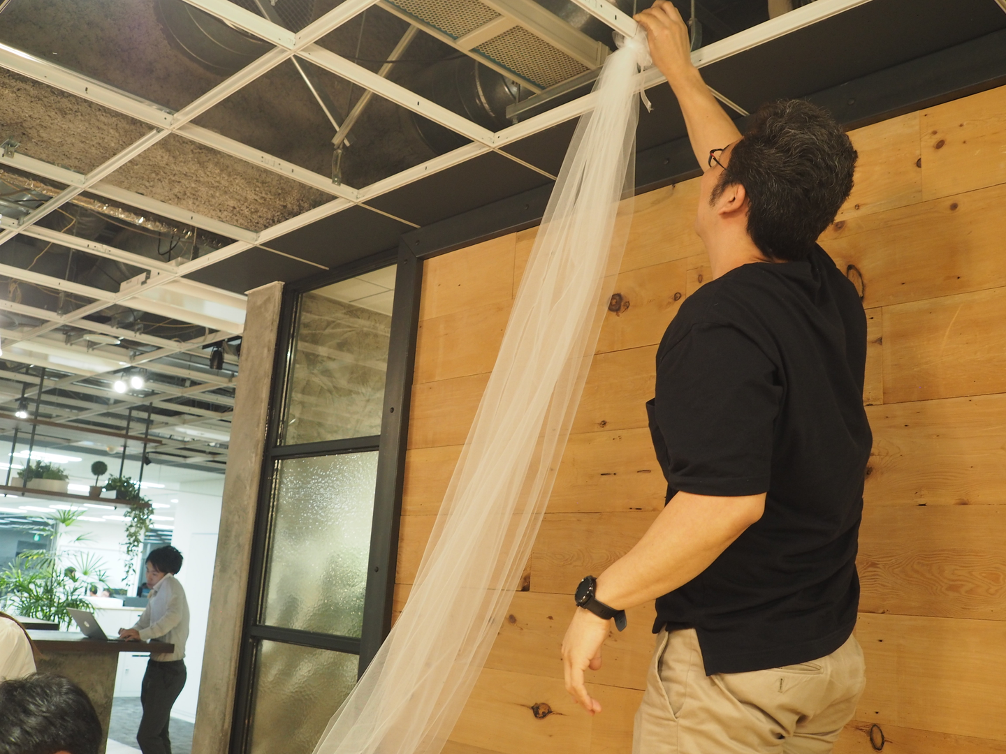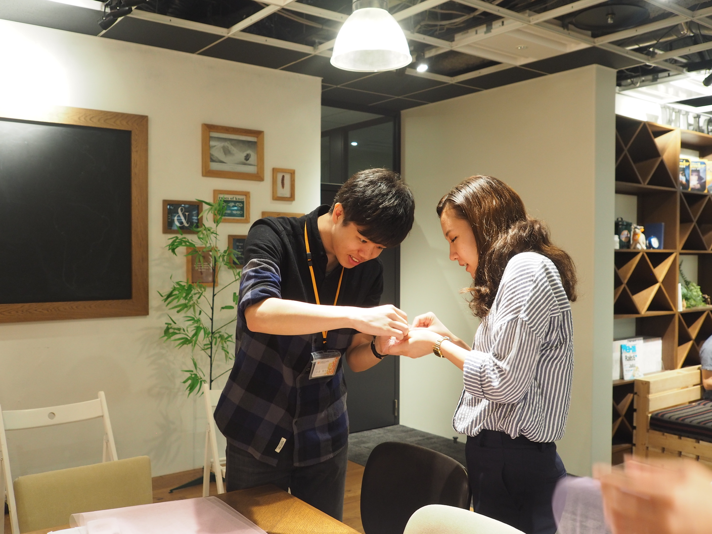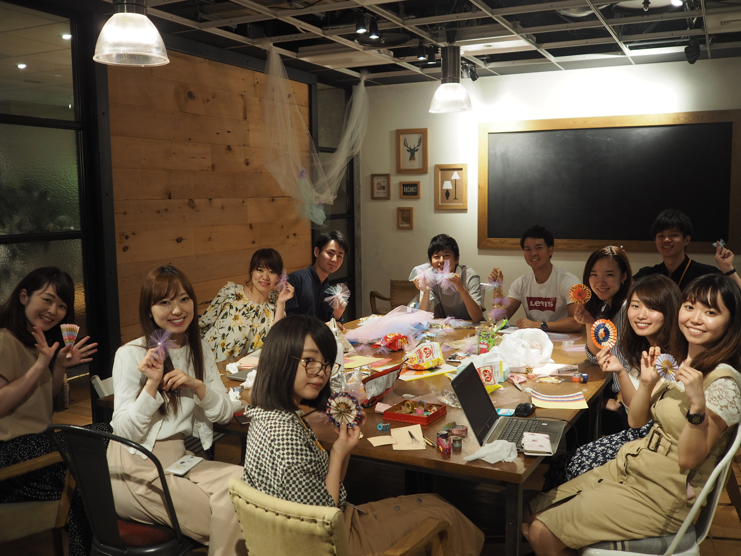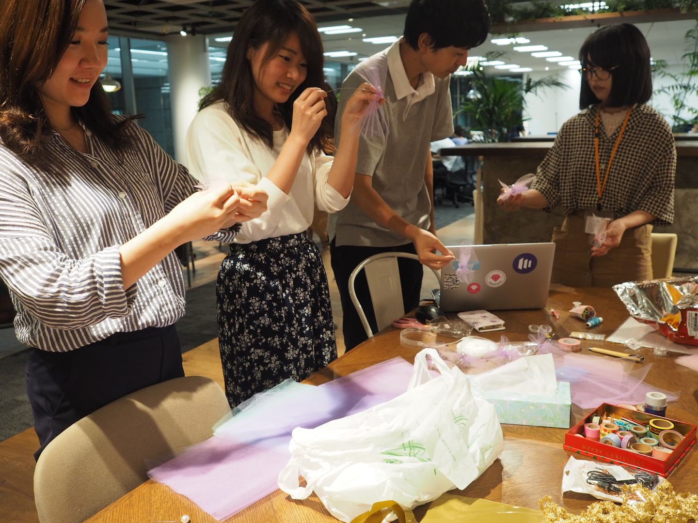 業務後に、Room0と呼ばれるコミュニティスペースに部員の社員が集まり、飾り作りにチャレンジ!