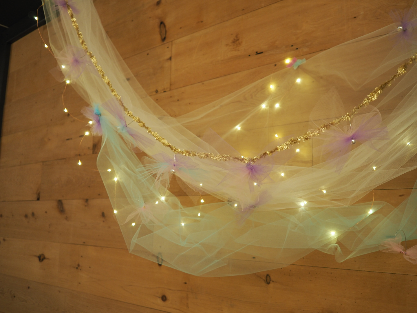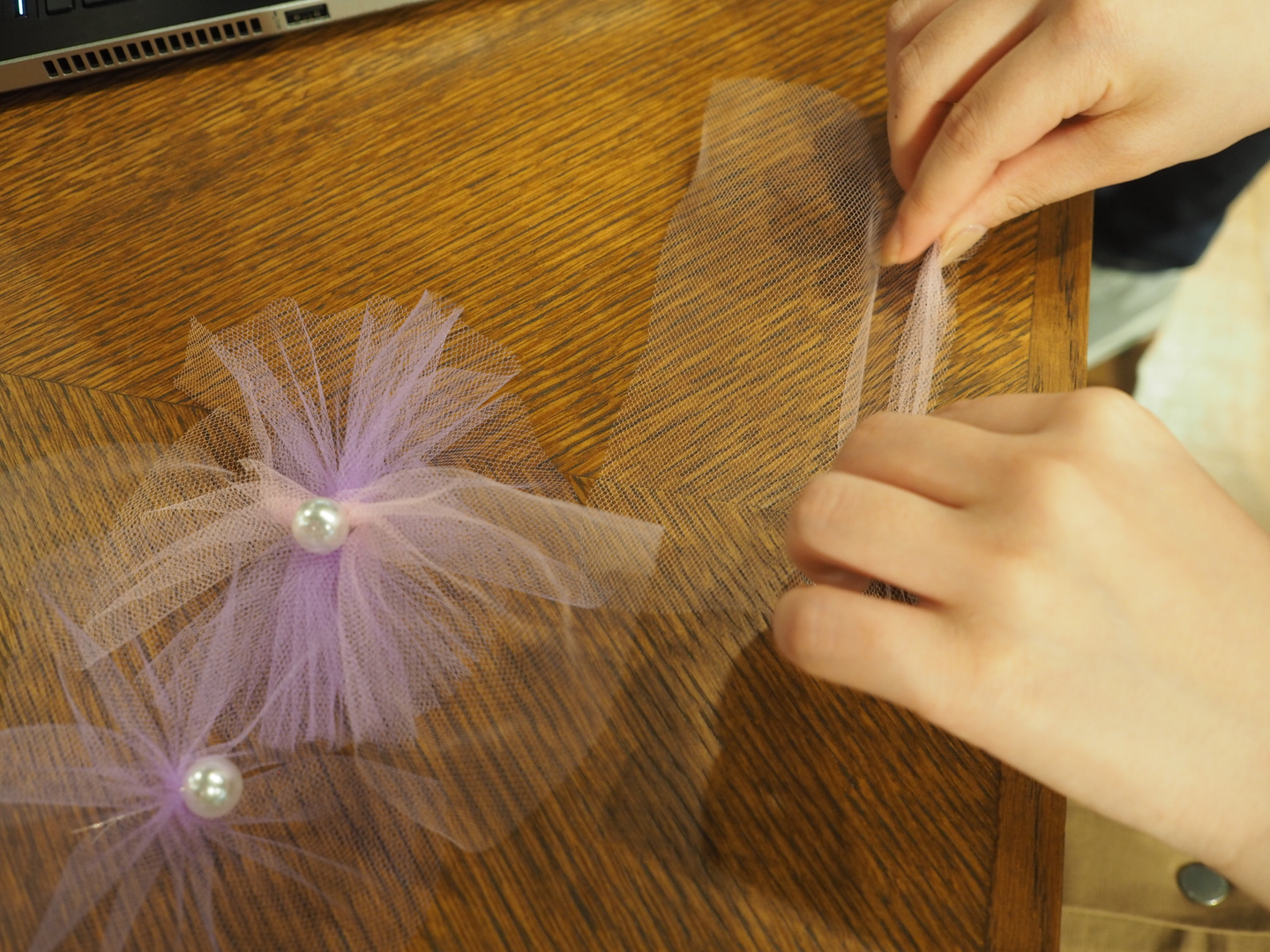 部員で協力しながら作ったチュールの飾りをところどころにくっつけて、さらに華やかな仕上がりに。