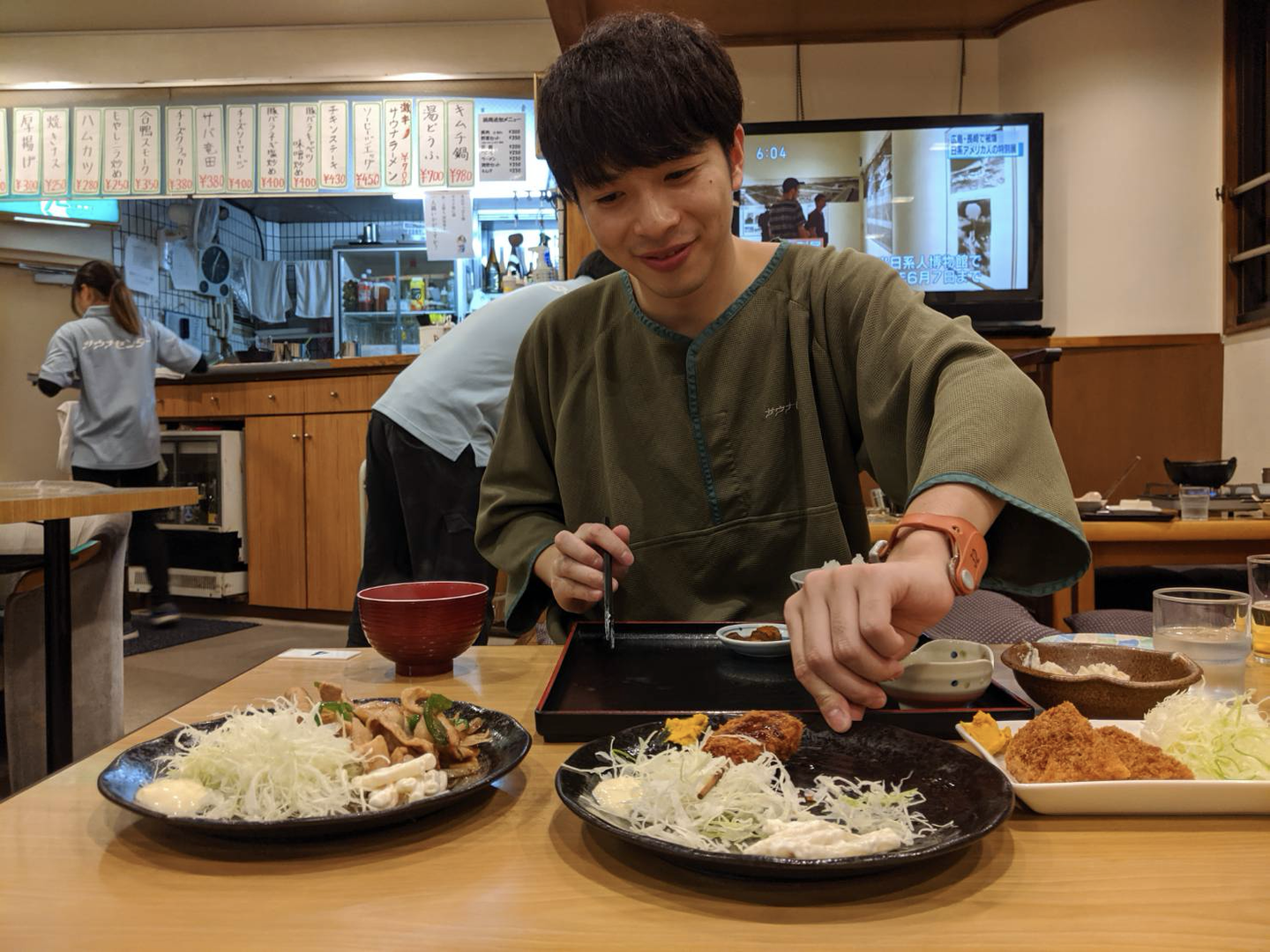 (サウナ施設でサウナ後のご飯(「サ飯(めし)」)を楽しむ様子。「いつもの数倍おいしく感じる!」と語るメンバーも多いです)