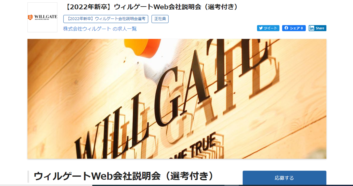 現在ウィルゲートは、2022年度新卒向けに会社説明・選考会を開催しています!