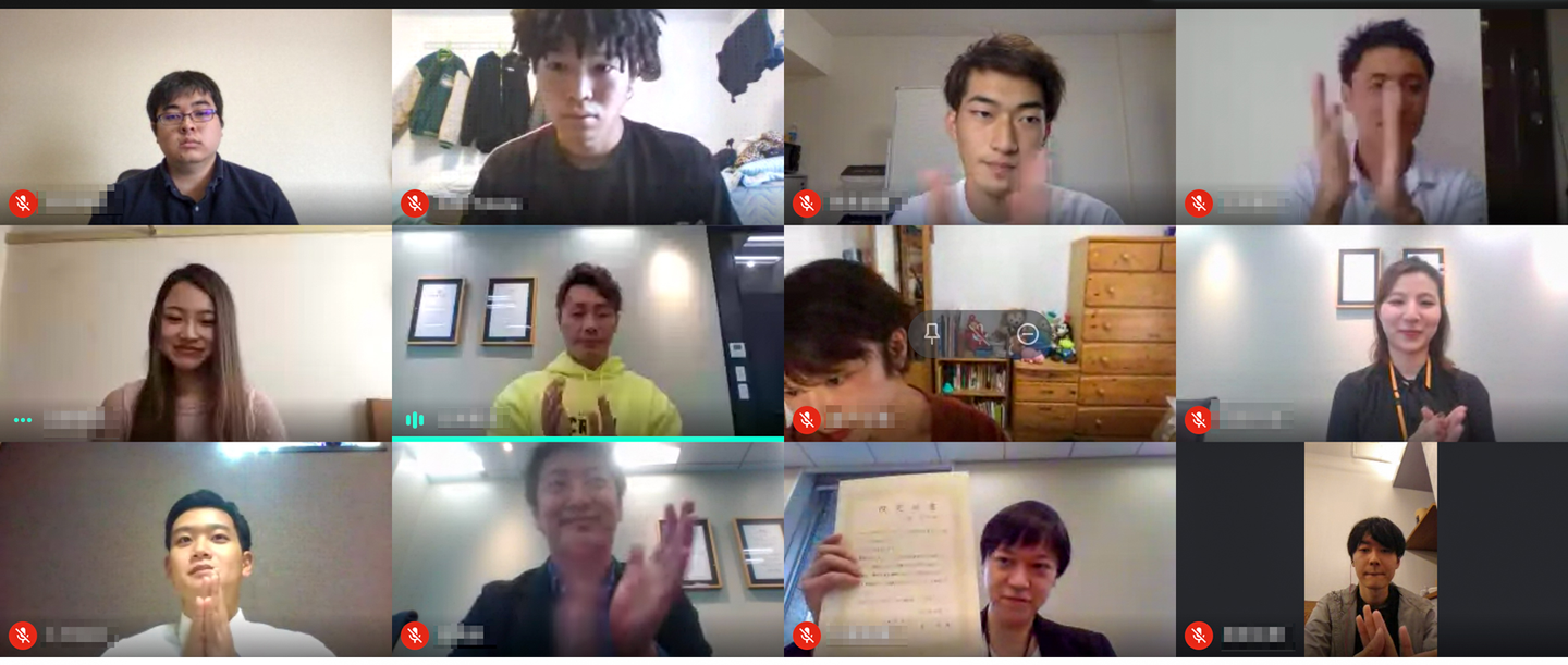 (内定証書はオンラインで参加している内定者の元に後日届けられる予定です。)