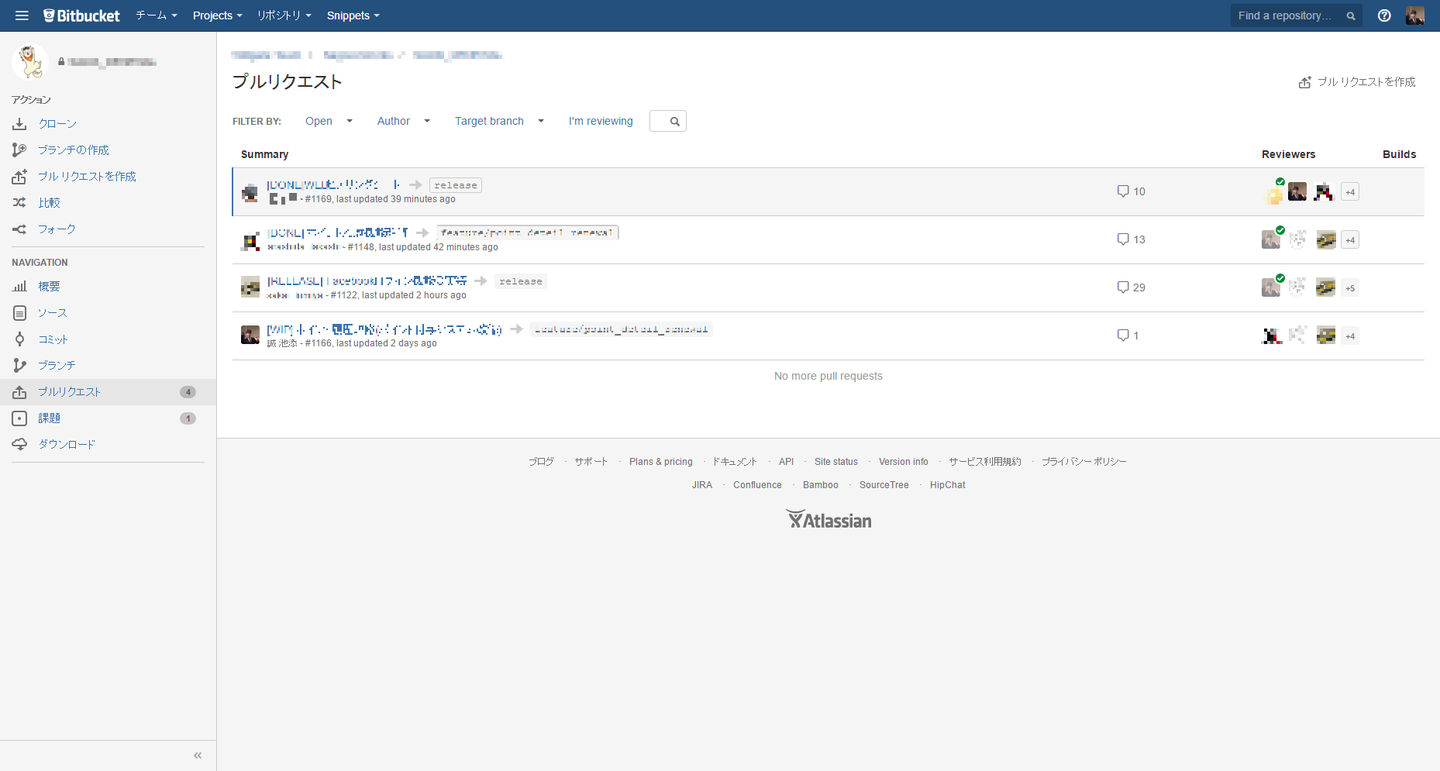 4. Bitbucket上でプルリクエストを作成し、チームメンバーにレビューしてもらう
