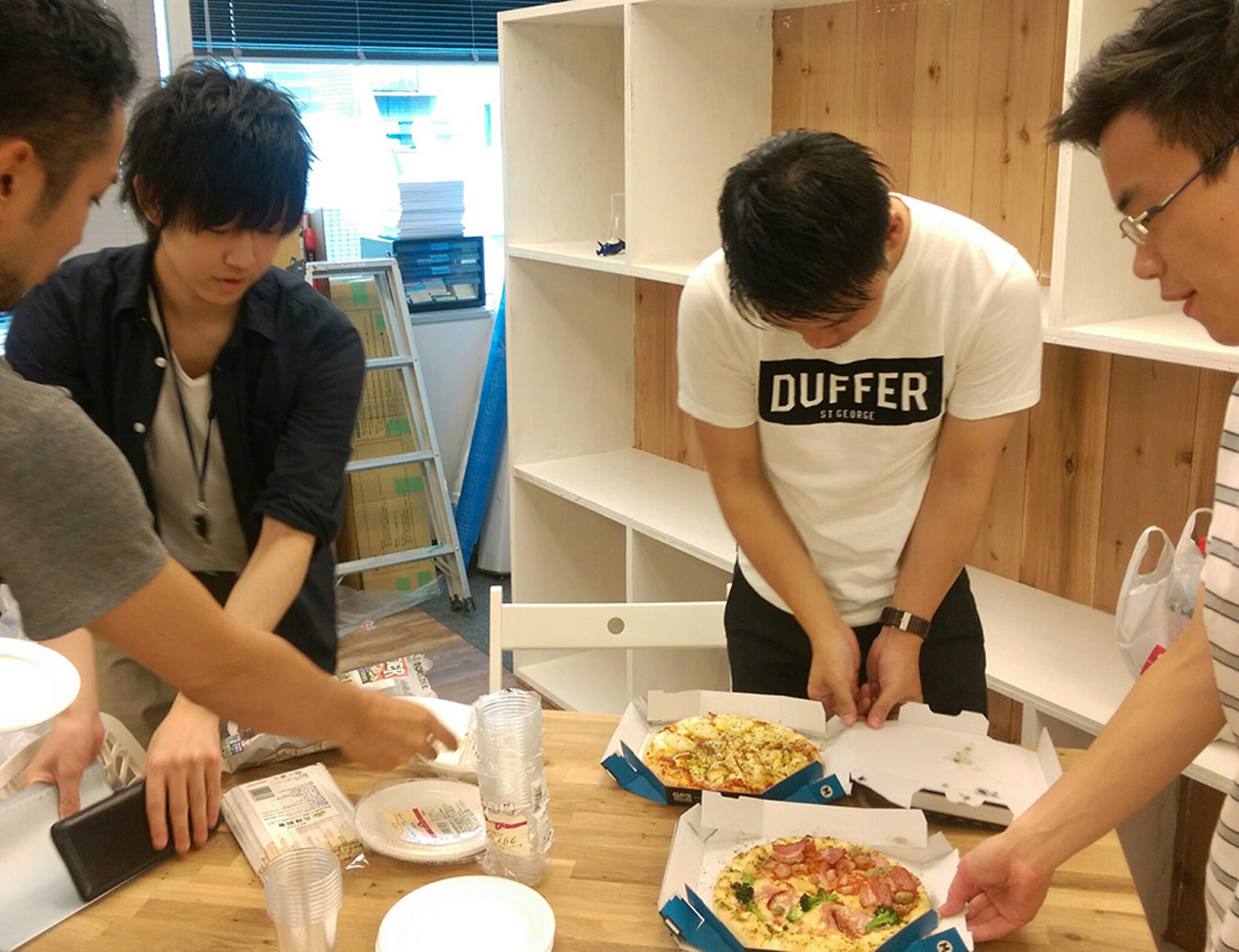 お昼はみんなでピザパーティー