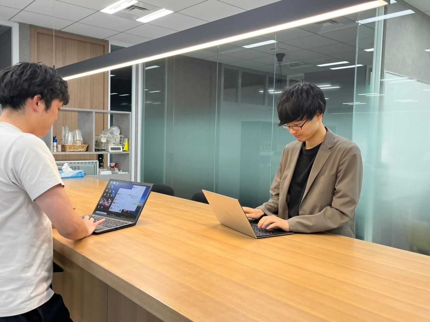 北林:倉田とは大学が一緒なんですよ。自分の方が内定が出たのが早くて、ウィルゲートへの入社を迷っていた倉田と自分の面談が大学近くで設けられたんですが、それが倉田との初めての出会いでした。年齢が自分のほうが2つ上だったこともあって、大学生の倉田はずっと自分に敬語を使ってましたね(笑)