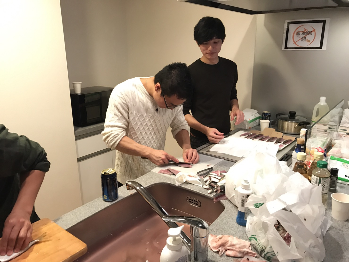 今回の目玉として、社員の友人であるプロの料理人をお招きし、釣ったアジを調理してもらいました。