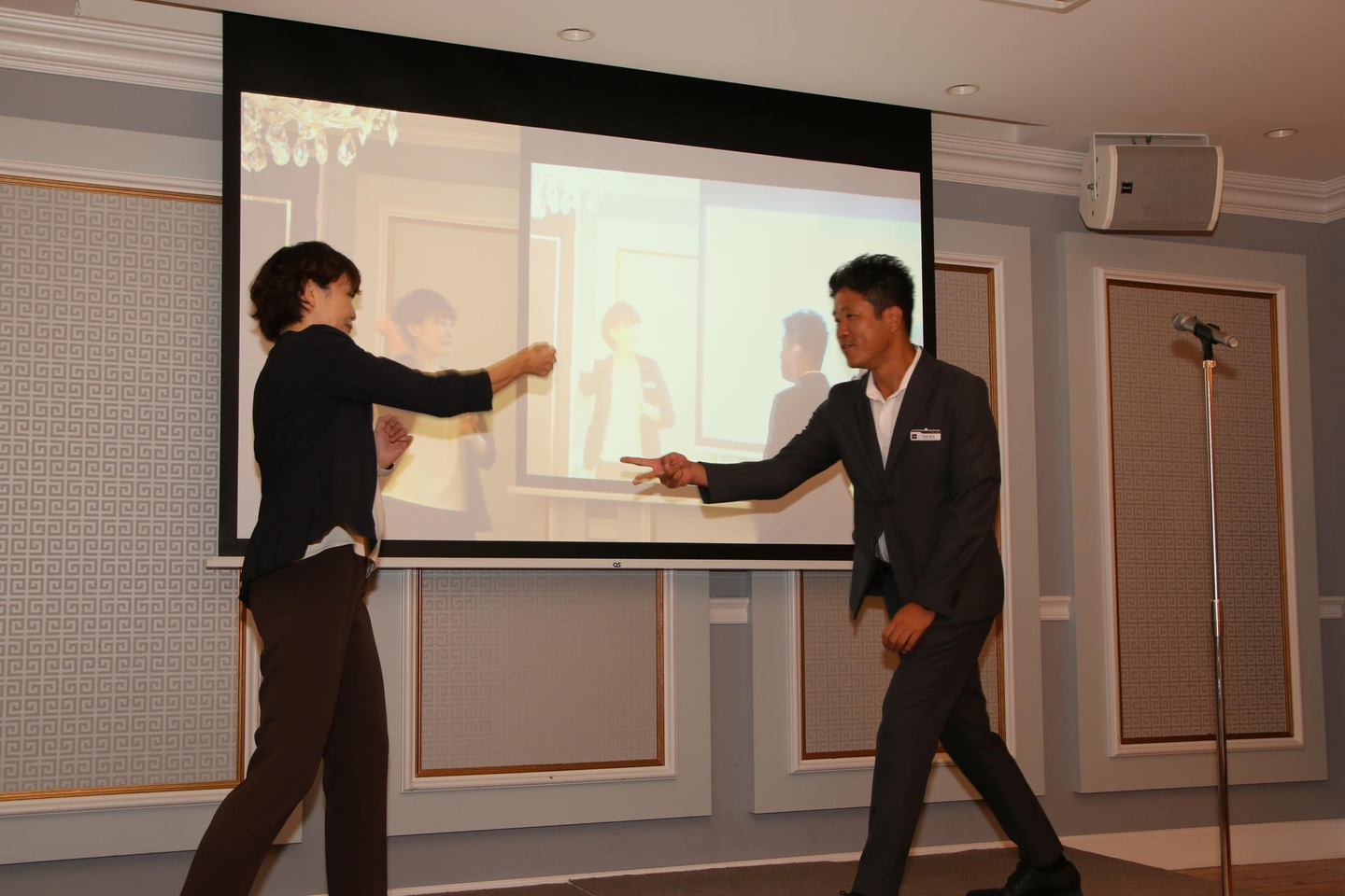 最優秀社員賞でお母さんからのメッセージ映像を見ながら