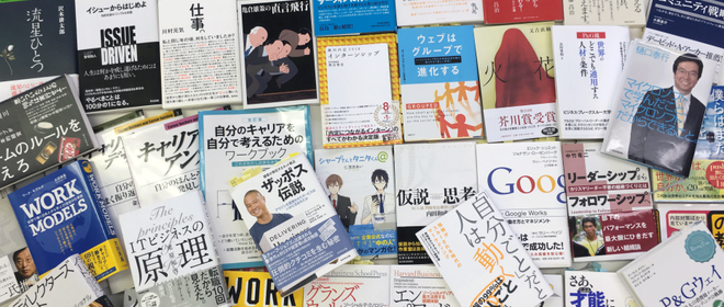 仕事をしていく上で、本を読むのは本当に大事です。ワークデザインの事業に関わる本、人材採用や人事マネジメント、戦略思考やアイディア出し、広告やコミュニケーション、ソーシャル・ネットワーク関連、マーケティングなどなど、いろいろあります。お客様のことを知るための本、10代~20代の学生たちの動向を知るための本まで入れるともっと増えます。仕事に直接関わらない本も必要。文学小説、時代小説、ビジネス小説、恋愛小説、ミステリーも超重要。ぜんぜん関係ないことをインプットした方が、思考が整理されたりアイディアの芽が見つかることもあるし、そして何より、良い小説は良い文章で書かれていて、それに触れるだけで意味...