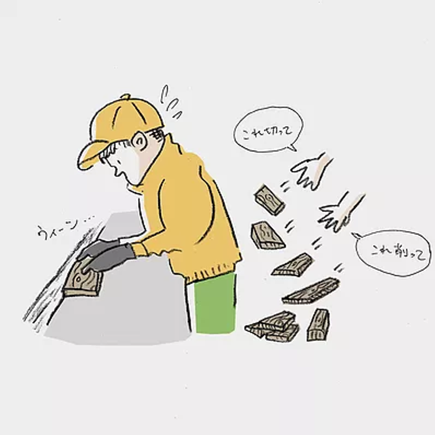 ちょっとカットしたいときも、工場スタッフを呼び止めて「ちょっとこれ切って!」なんて日常茶飯事です。もちろん仕事の邪魔をしすぎない程度に…