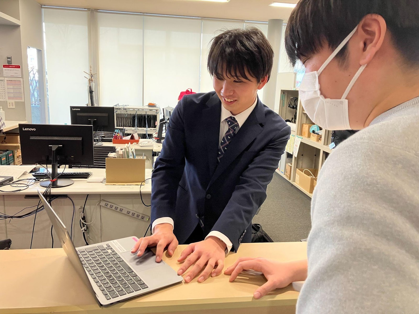 木原:大学の情報メディアセンターに常駐をして、ITサービスに関わる業務支援をしています。業務としては、窓口での申請書対応や、大学の授業・自主学習で使われるパソコン等の貸し出し対応、教室のヘルプデスク業務・授業の運営サポートなどです。シフト制(二交代制)で、担当するキャンパスが3つあるので、たまに行き来したりもします。また、学生アルバイトも100名ほどいるのですが、その育成とマネジメントを行うことも仕事の一つです。