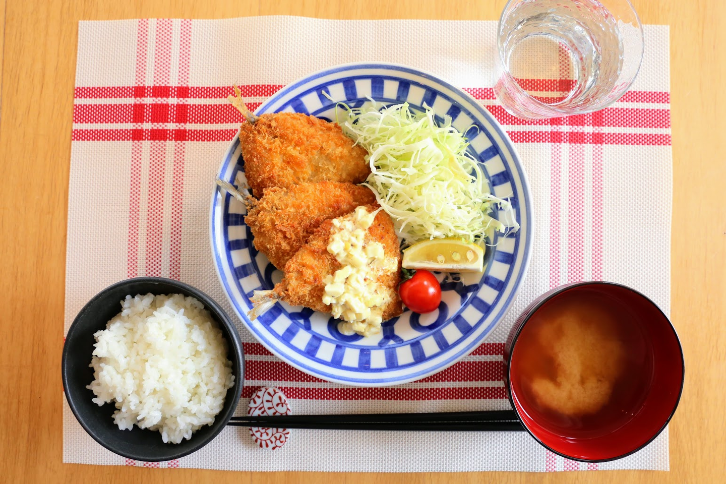 大人気のアジフライ!この日は50尾(!)ものアジを揚げてくださり、三枚ペロリと食べちゃう社員がほとんどでした。タルタルソースとソースが選べます!