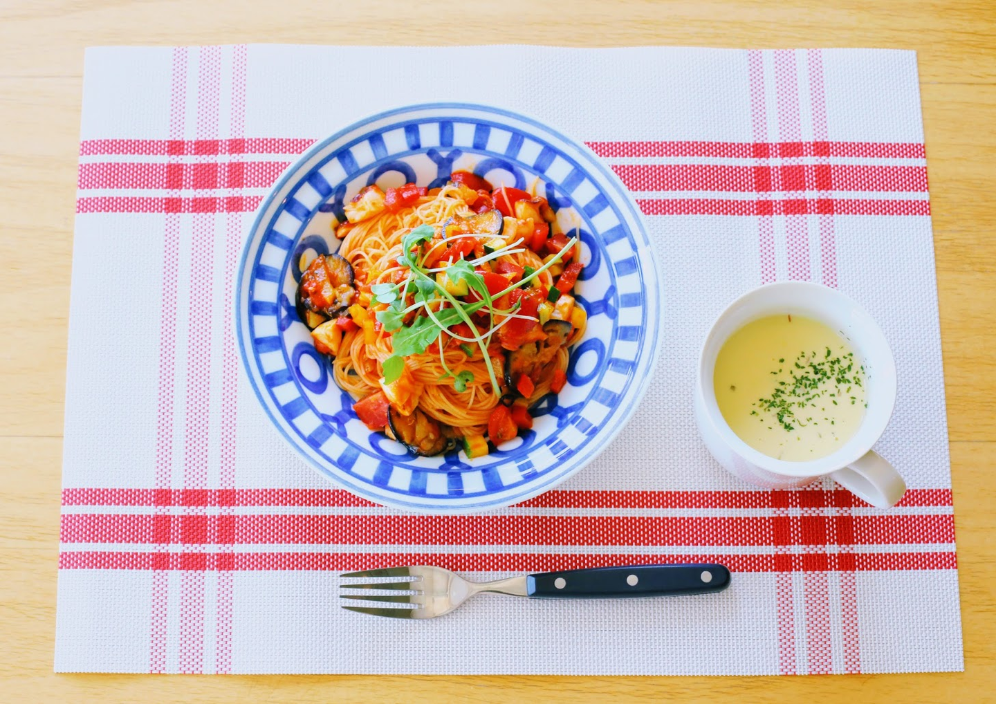 ナスやトマトなどの夏野菜を使った冷製パスタは、細い麺を使用しているのでサラッと食べれちゃいました!彩りがキレイだと食欲がわきますね♪