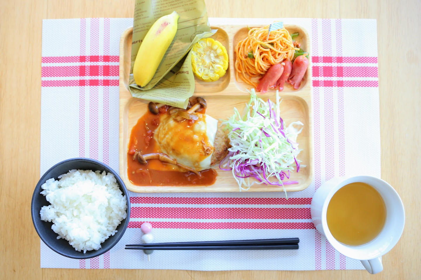 大人気メニューのハンバーグシリーズ!ハンバーグは人気なので定期的に味が変わって登場します。この日はチーズハンバーグにタコウィンナーやナポリタンに旗が刺さっていたり、”大人様ランチ”仕様でした!お肉がふわふわジューシーで、あっという間に食べちゃいました。