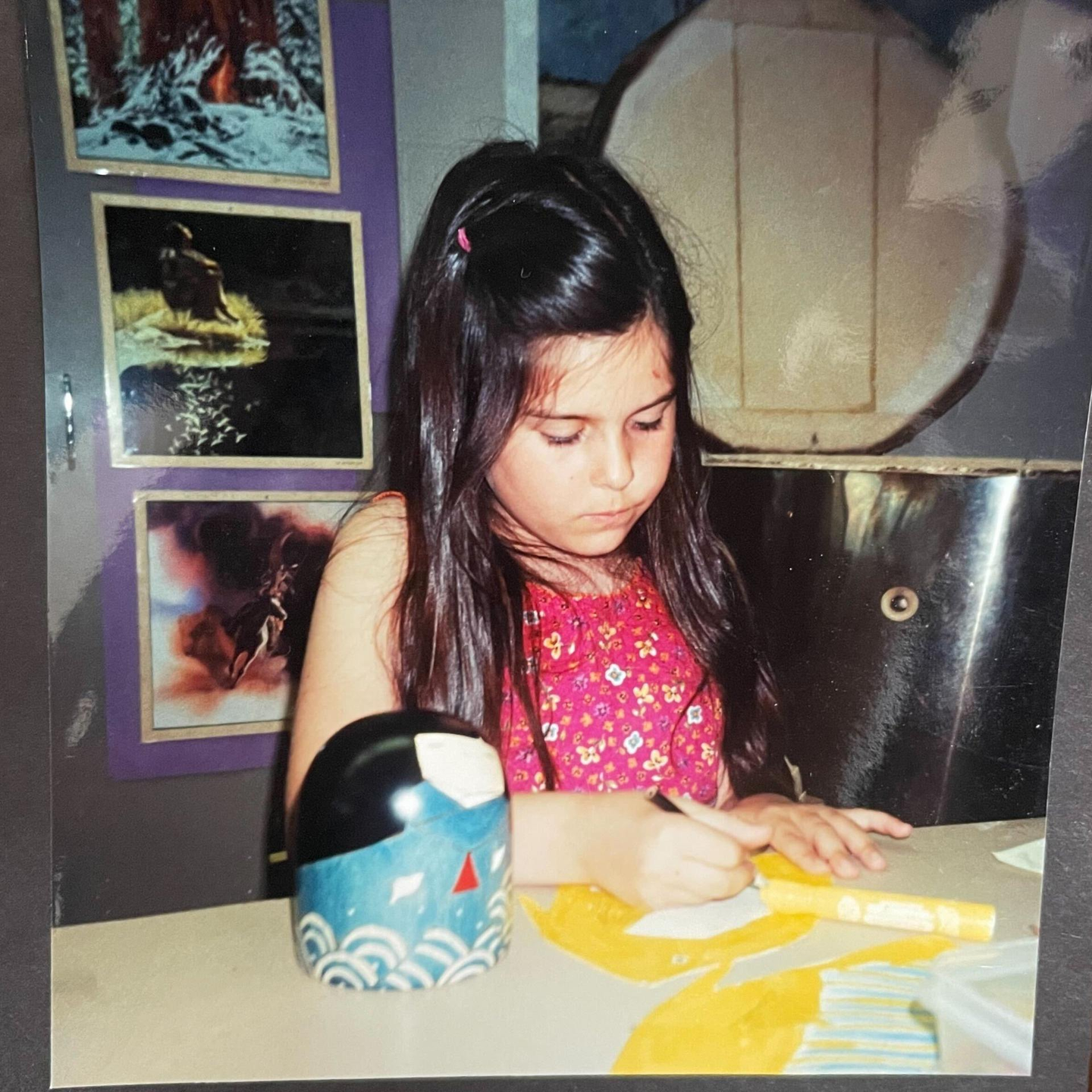 小1の私です。お土産として叔母からもらった日本のこけしがとても気に入って、学校まで持っていきました。幼少期からジャパンラブです。