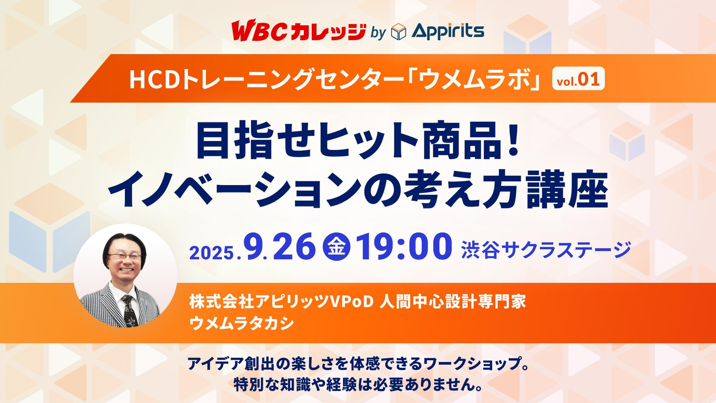 9月26日(金)19:00から、WBCカレッジ「HCDトレーニングセンター『ウメムラボ』」を開講します。今回は、ウメさんが講師として登壇!「アイデア創出の楽しさを体感できる」ワークショップって、一体どんなものなんでしょうか・・!