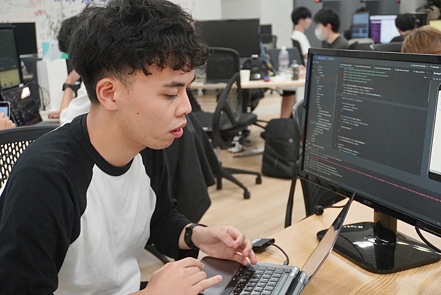 まっちゃん:さらに、自分の得意分野である「Flutter」を使った開発にも挑戦したいです。「Flutter」はiOSとAndroidのアプリを一つのコードで開発できるので、効率が非常に良いんですよ。bravesoftでも「Flutter」を取り入れて開発の効率化に貢献したいと思っています!!