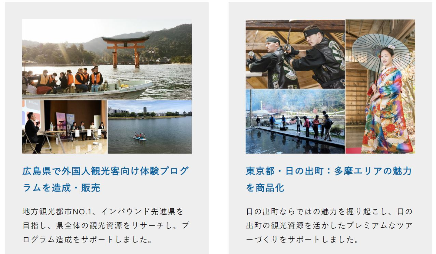 地域ソリューション事業でも、インバウンドについての課題があがることが多くあります。外国人観光客をターゲットとした体験プランの企画造成に強みを持っているのも、私たちが地域ビジネスとインバウンド事業の両方のビジネスを行っているからこそです。