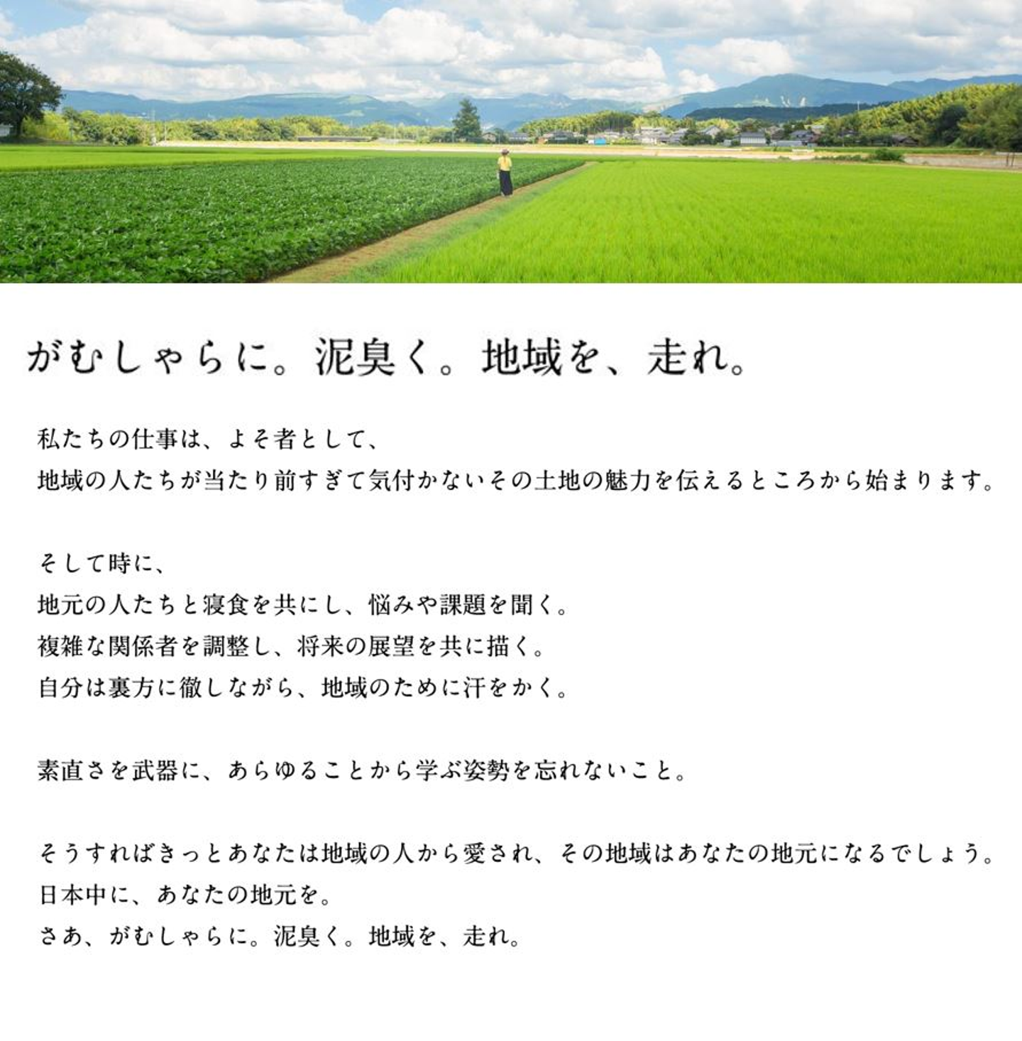 中でも、地域プロデューサーとなっていく企画営業職のメンバーは新卒・中途ともに募集をしており、リクルートページにこんな採用メッセージを載せています。
