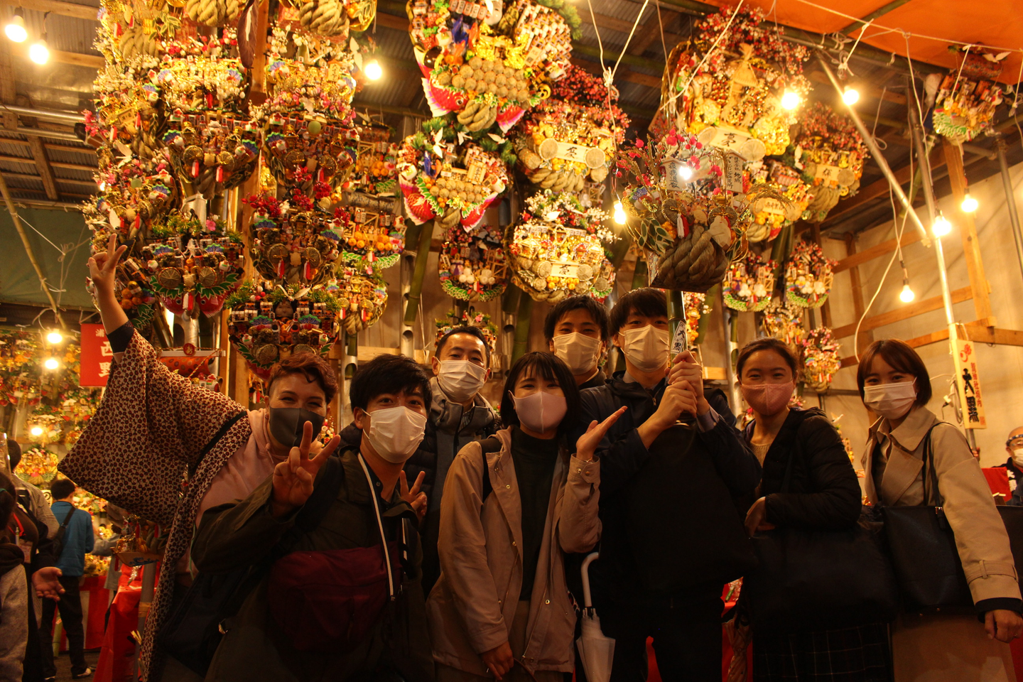 酉の市では、毎年商売繁盛縁起を担ぐ熊手を買っています!