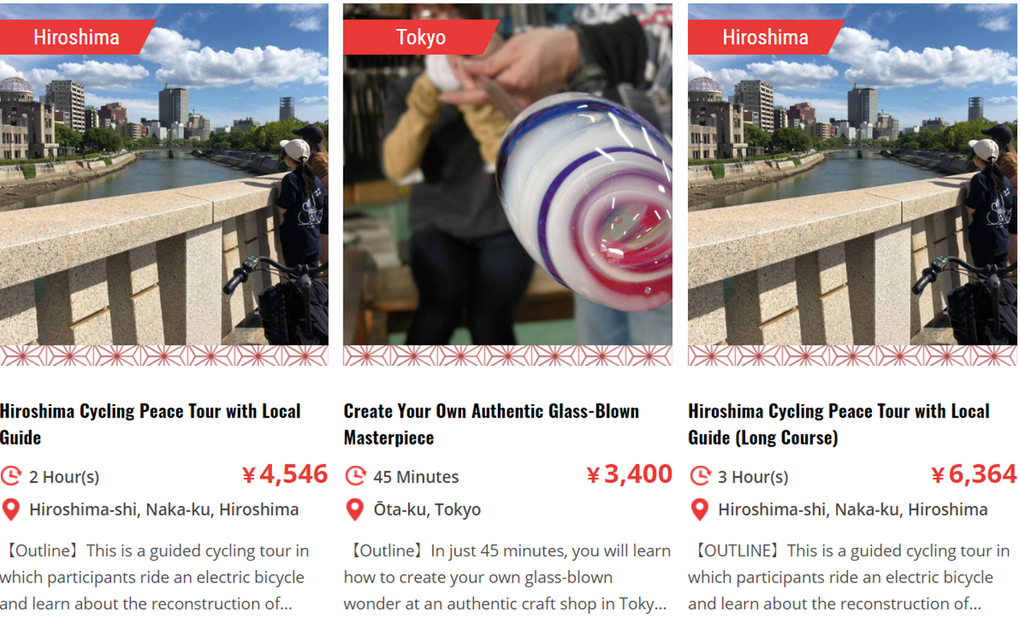 「Attractive JAPAN」のユーザーは、日本語や英語、繁体字で各地の体験プランを見ることができます。