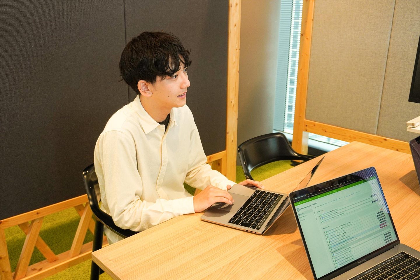 作業時間は案件に関わるタスクをどんどん進めています。案件のタスク自体が設計・実装・テストまでを行うのが通例で数日かけて行います。それを作業時間のなかで細かく区切りつけて、進めています。設計の前にチームで話し合って仕様を決める時もあり、どのような要件を満たしたいのかも議論します。