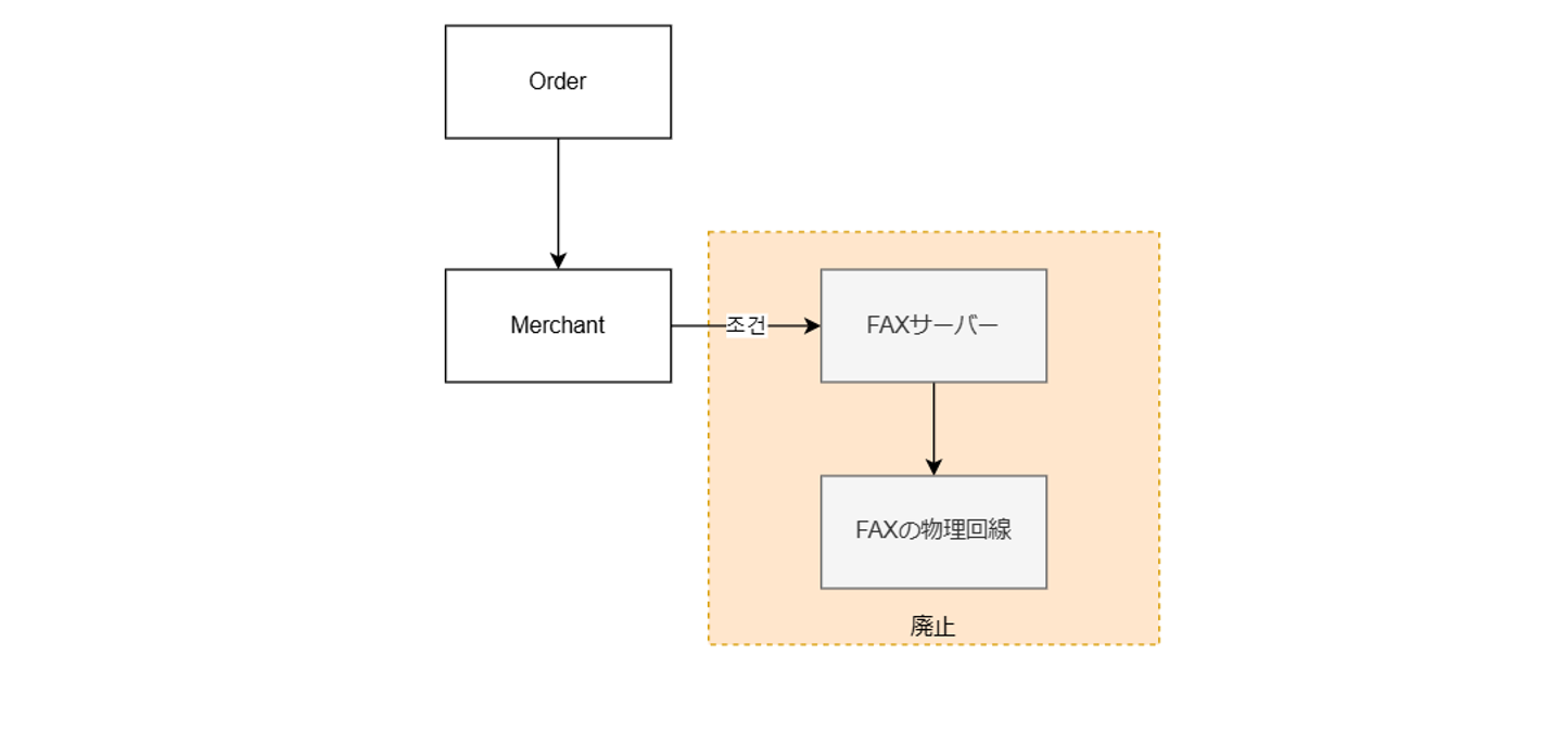 現在、出前館は、本格的なバックエンドの刷新に入る前に、仕様を軽量化する作業を進めています。例えば、出前館は、ユーザーがWebで注文すると、加盟店がその注文をFAXで受け取るというのが当初のビジネスモデルであったため、最近までFAXで注文書を送信する機能がありました。現在はほとんどタブレットに置き換えられましたが、一部の加盟店では特定の条件下でFAXで注文書を送信する機能を使い続けており、最近まで月に1000件ほど送信していました。