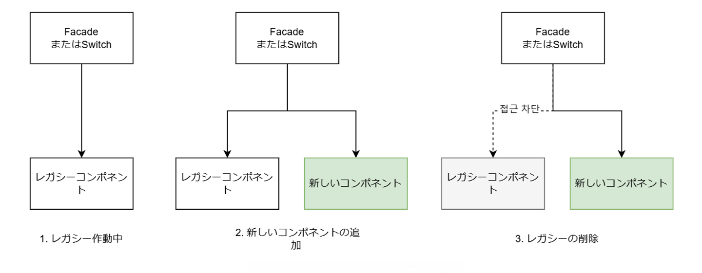 この方法の欠点としては、徐々に改善していく方法なので、かなり長い時間がかかるという点と、安定性を重視するだけに、レガシーの最も中核の部分は交替できない場合が多いという点が挙げられます。 そのため、より極端な方法も使われます。 どのような方法があるのか、一つずつ事例とともに紹介します。