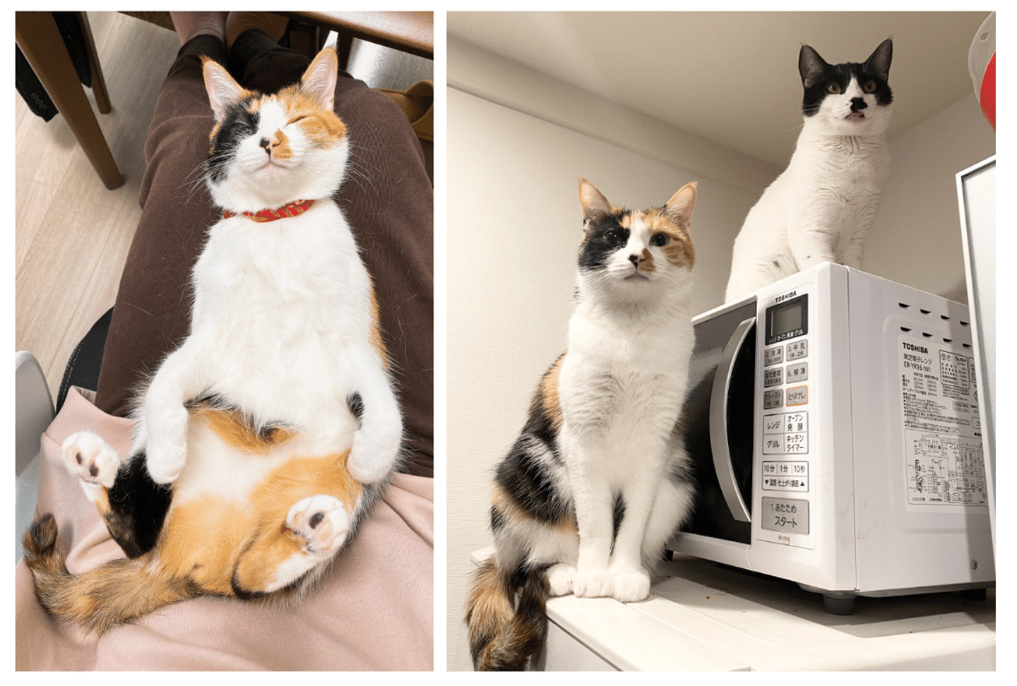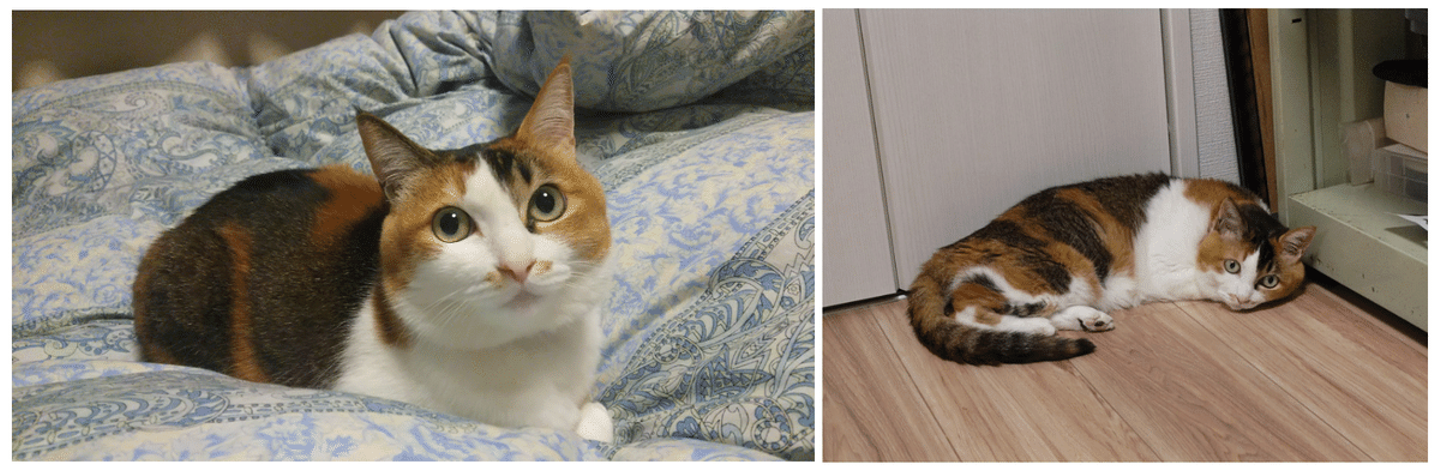 コハル(♀/2歳半/三毛)、ミツナリ(♂/1歳半/ハチワレ)