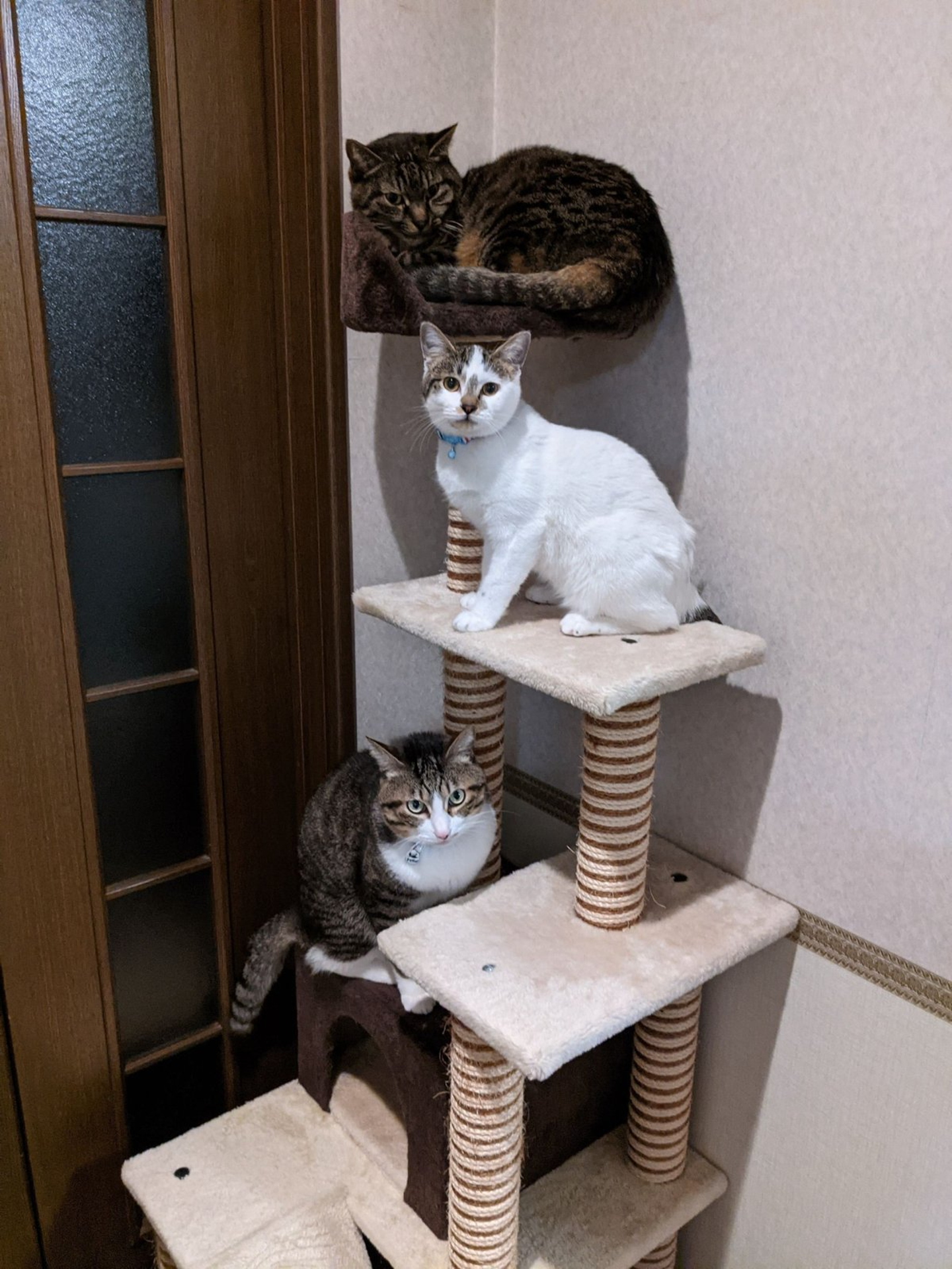 実家猫たちです。犬派だった家族を私が説得して1匹目を迎えるとすぐに溺愛され、いつも間にか多頭飼いになっていました。しかし、猫らの中での序列は私が一番下。解せぬ。でも可愛い。。。
