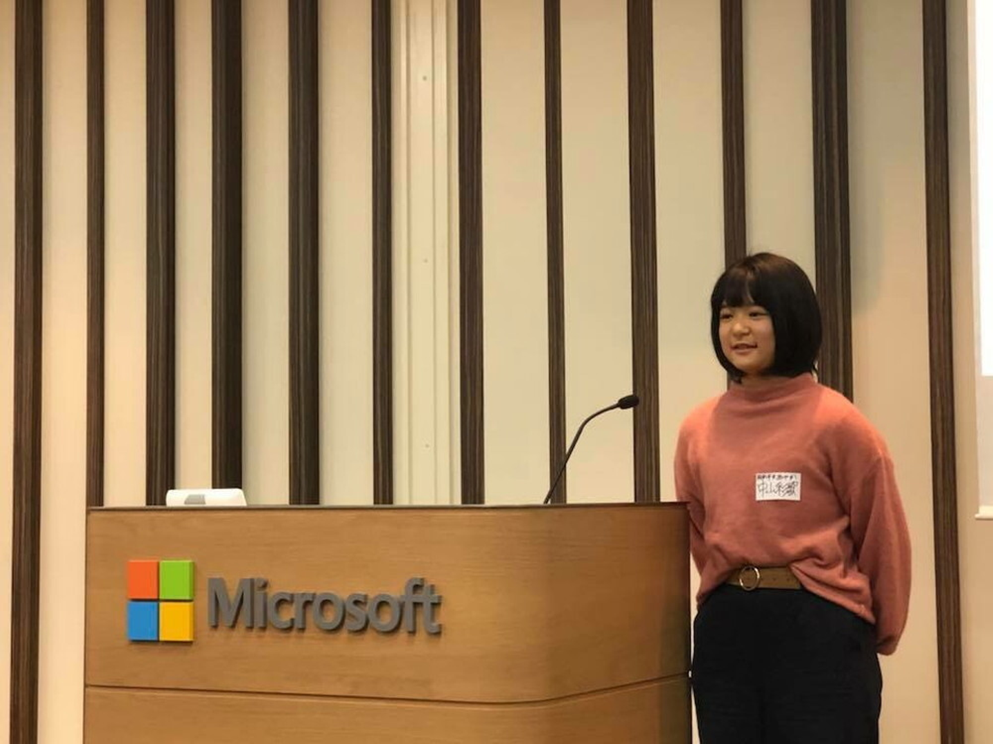 (写真:高校時代、マイクロソフト社でプレゼンする娘さん。PC1つでここまで劇的に変化するとは!)