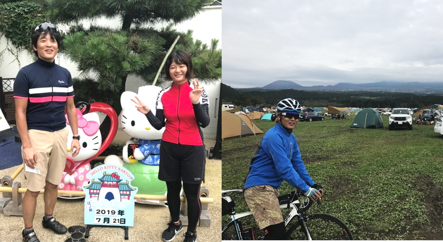 写真:親子で趣味のロードバイク。なんと年間8,000kmを走破しているとか(驚)