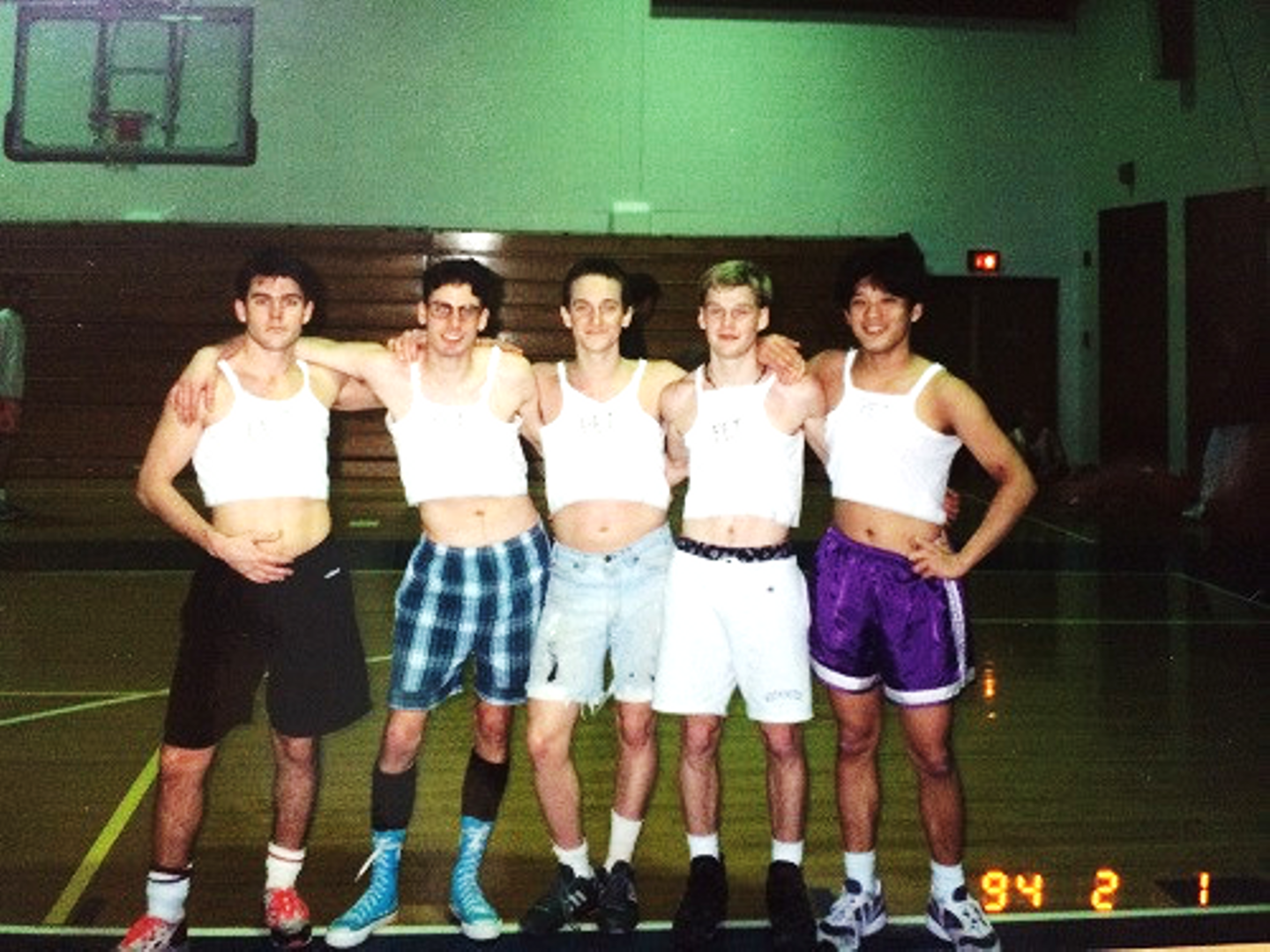 (写真この画像は……大学時代、メガサイズのブリーフをくり抜いたものをユニフォームにしたバスケチームです。差別化を意識しすぎてこういう恥ずかしいこともしていました(笑))