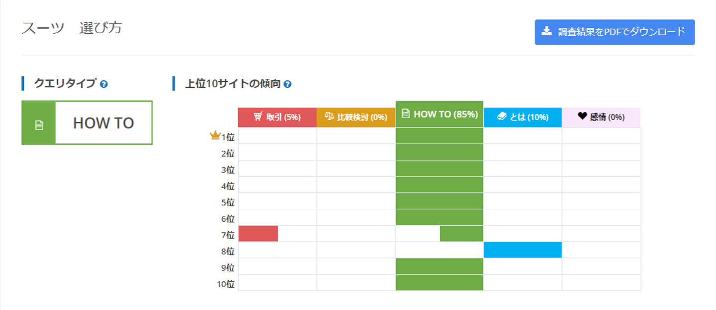 (画像:MIERUCA「クエリタイプ分析」の結果サンプル)