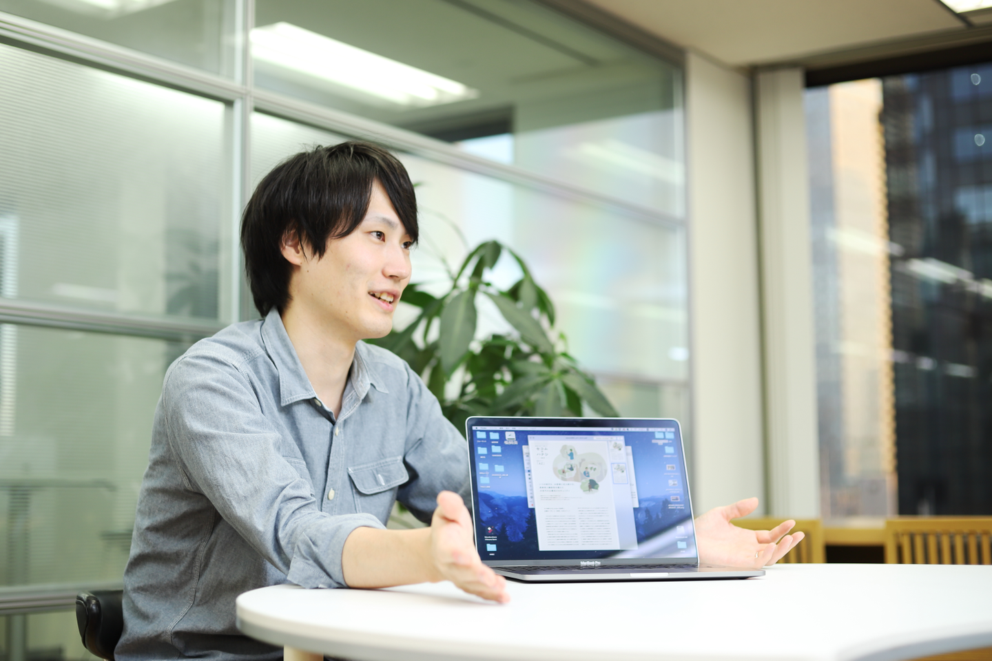 特に難しかったのはコミュニケーションです。デザインをするためには、お客さまから課題、問題を引き出さなければならない。それは質問すれば出てくるものと簡単に考えてしまっていたんです。でも、お客さまについて何も分からない状態で商談に行ってしまうと、こちらから情報を出せず、会話が成り立たないということに気づきました。それからは、自分で調べたり上司に聞いたりと、事前にお客さまを知っておく努力をするようになりましたね。お客さまから課題を引き出す努力というのをそこで学びました。今では、お客さまから悩みや希望を引き出しながら、その場でMacBookでデザインを組んで見てもらう、という自分らしいスタイルでデザインを進めることができるようになりました。