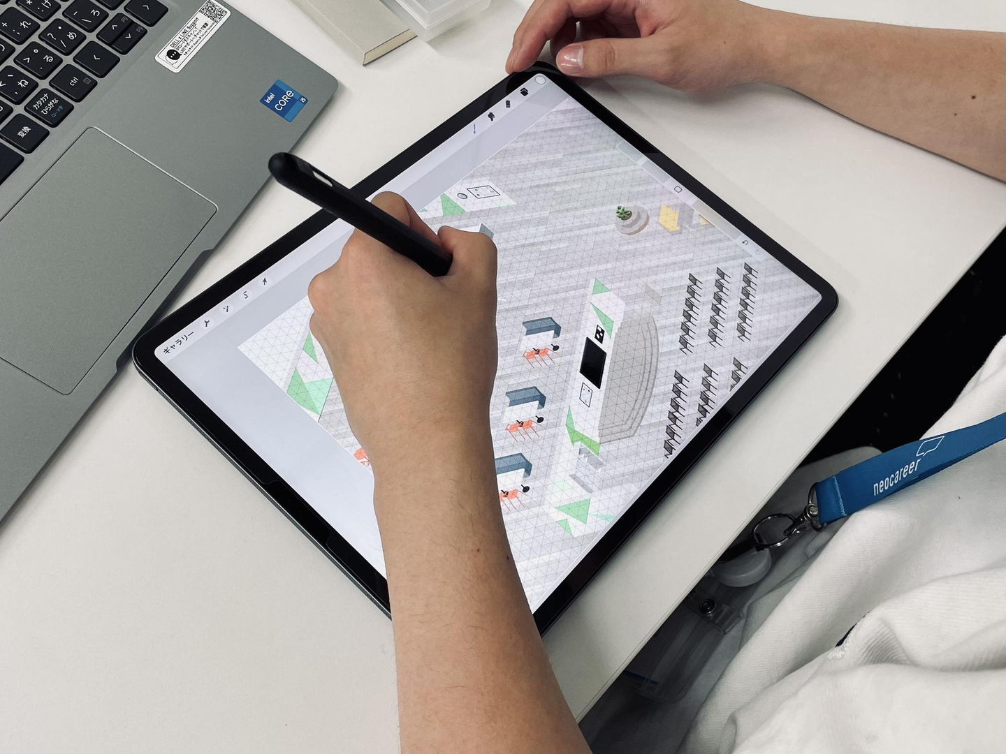 皆葉:そうですね!特技を活かしながら仕事に取り組めているのは、本当に恵まれた環境だと思いますし、日々成長を実感しています。実際に、自分の描いた背景デザインがサービスとして形になるのは嬉しいです。その反面、大きな責任も感じますが、お客様や仲間の期待に応えられるよう頑張っています。