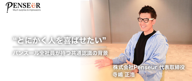 巧いデザインより深いデザイン、 人の胸を打つクリエーティブには 「ストーリー性」が宿っているもの。 2008年4月の創業以来、Penseurはそれぞれのお客さまが持つ、 核となるメッセージやストーリーを見つけ出し、カタチにしてきました。 コーポレートフレーズでもある、「Much surprise & impressions」。 多くの驚きと感動という意味であるこのキーワードを掲げ、Penseurはこれからも真摯にお客さまと向き合い、ワクワクするような、夢のあるストーリーを共に描いていきます。