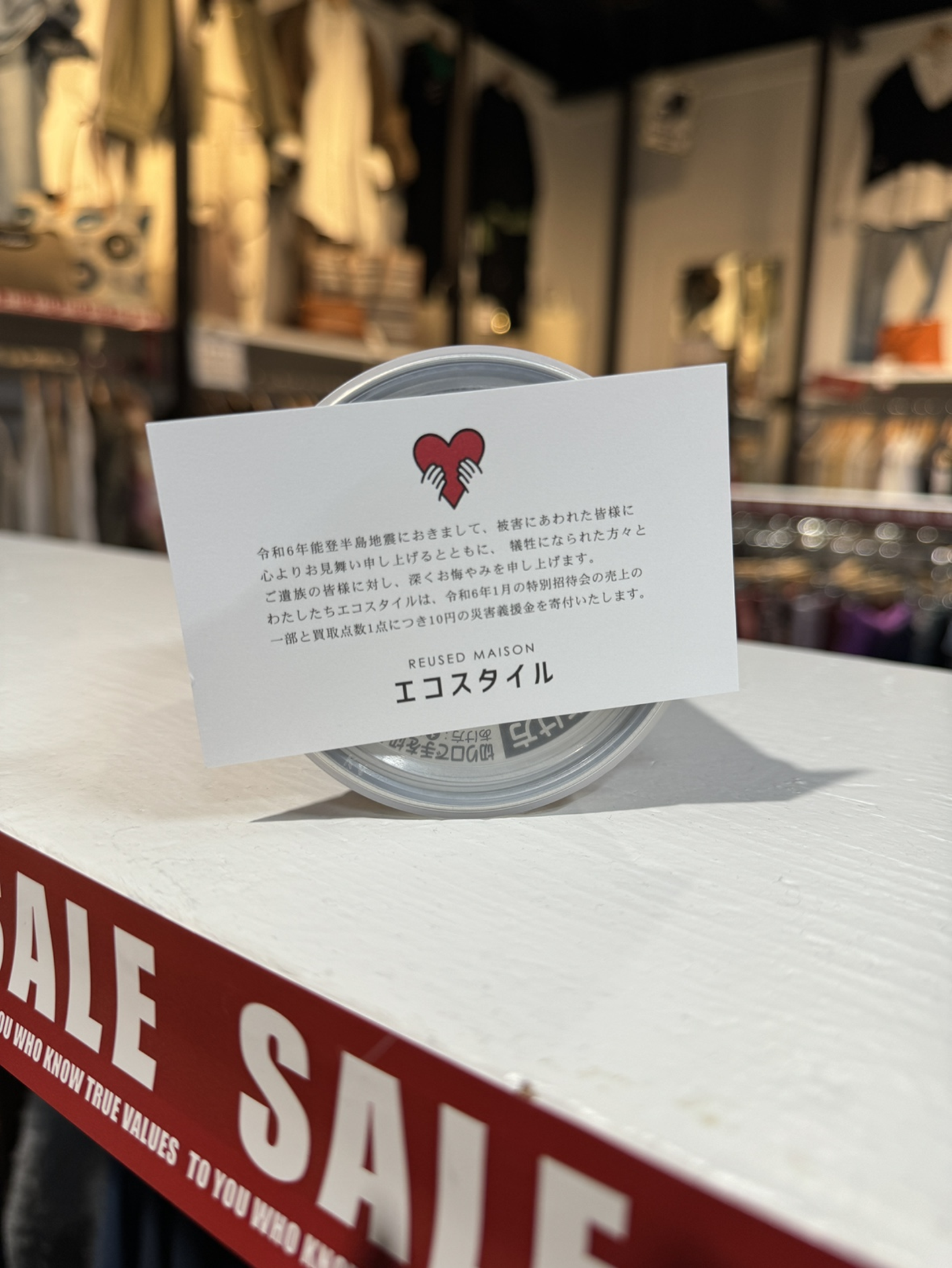 ③業者卸にて活用されているJBA主催のK-ブランドオフ様の本社が石川県の為、義援金の寄付