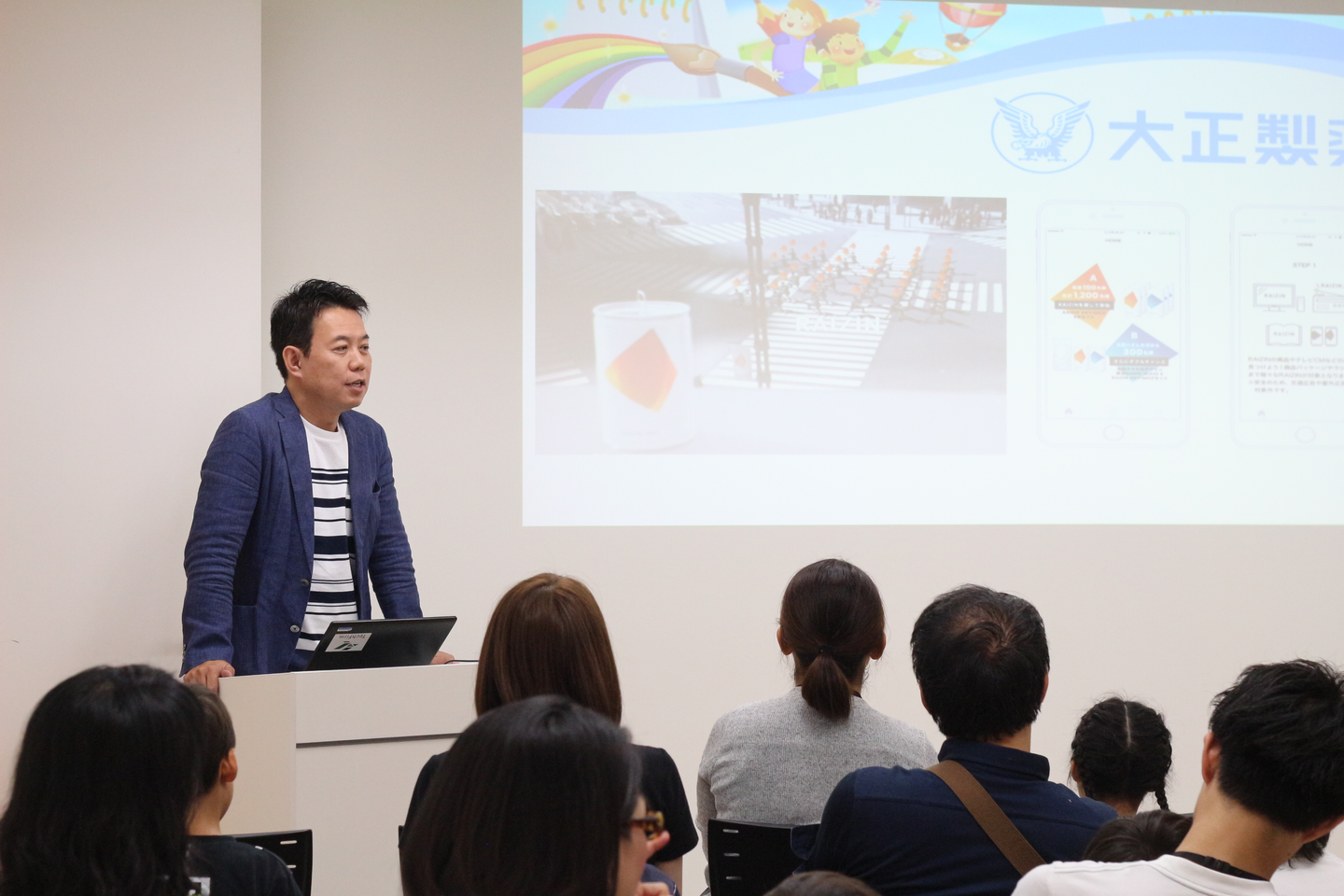 プログラムの説明に加えて社長からテックファームの事業内容や働きやすい制度について説明がありました。開発実績である身近なアプリの紹介から、ちょっと未来の話しを聞いていただきました。