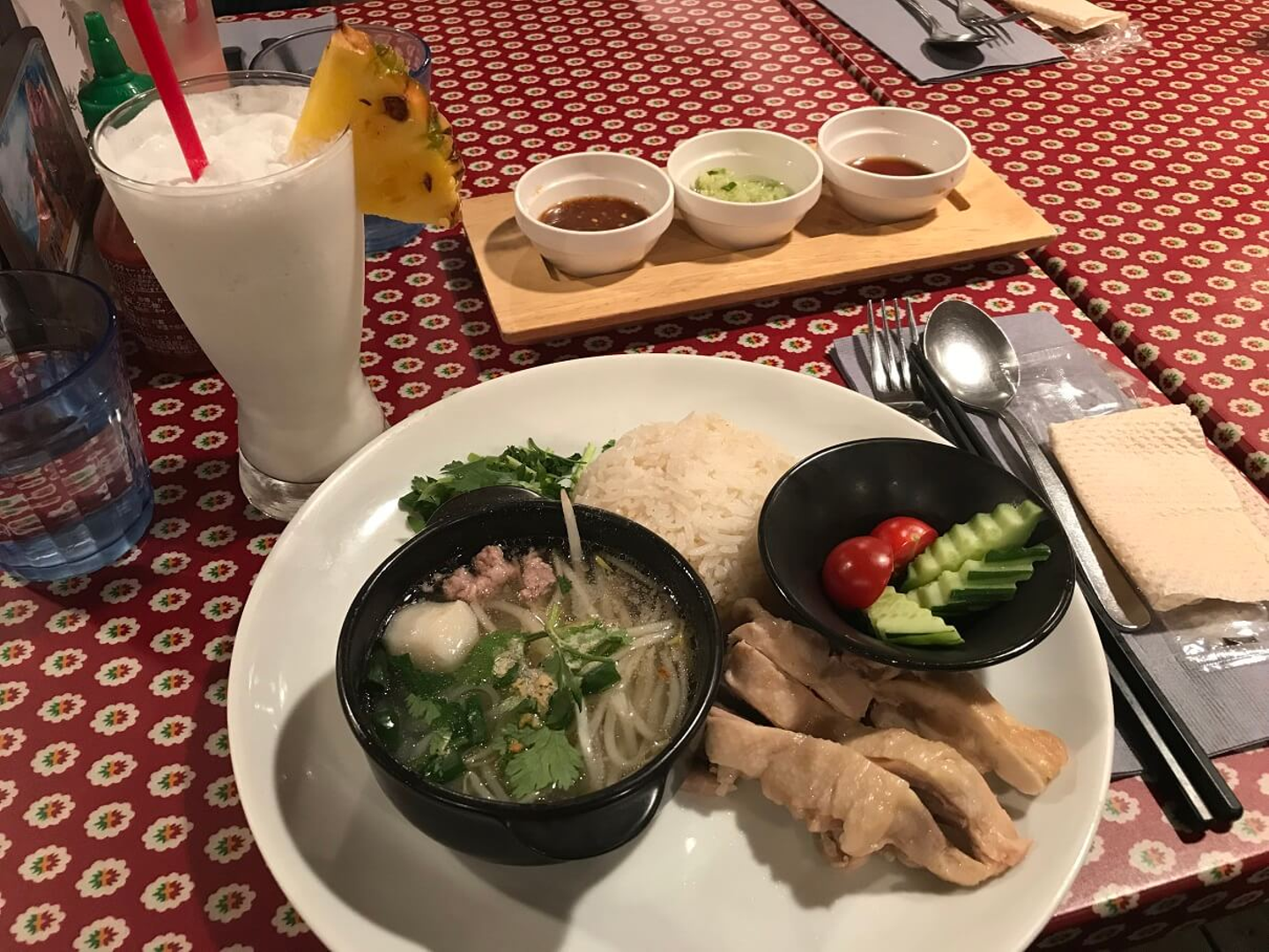 この日もカオマンガイと、美味しそうなスープでしょうか?ヌードルでしょうか?