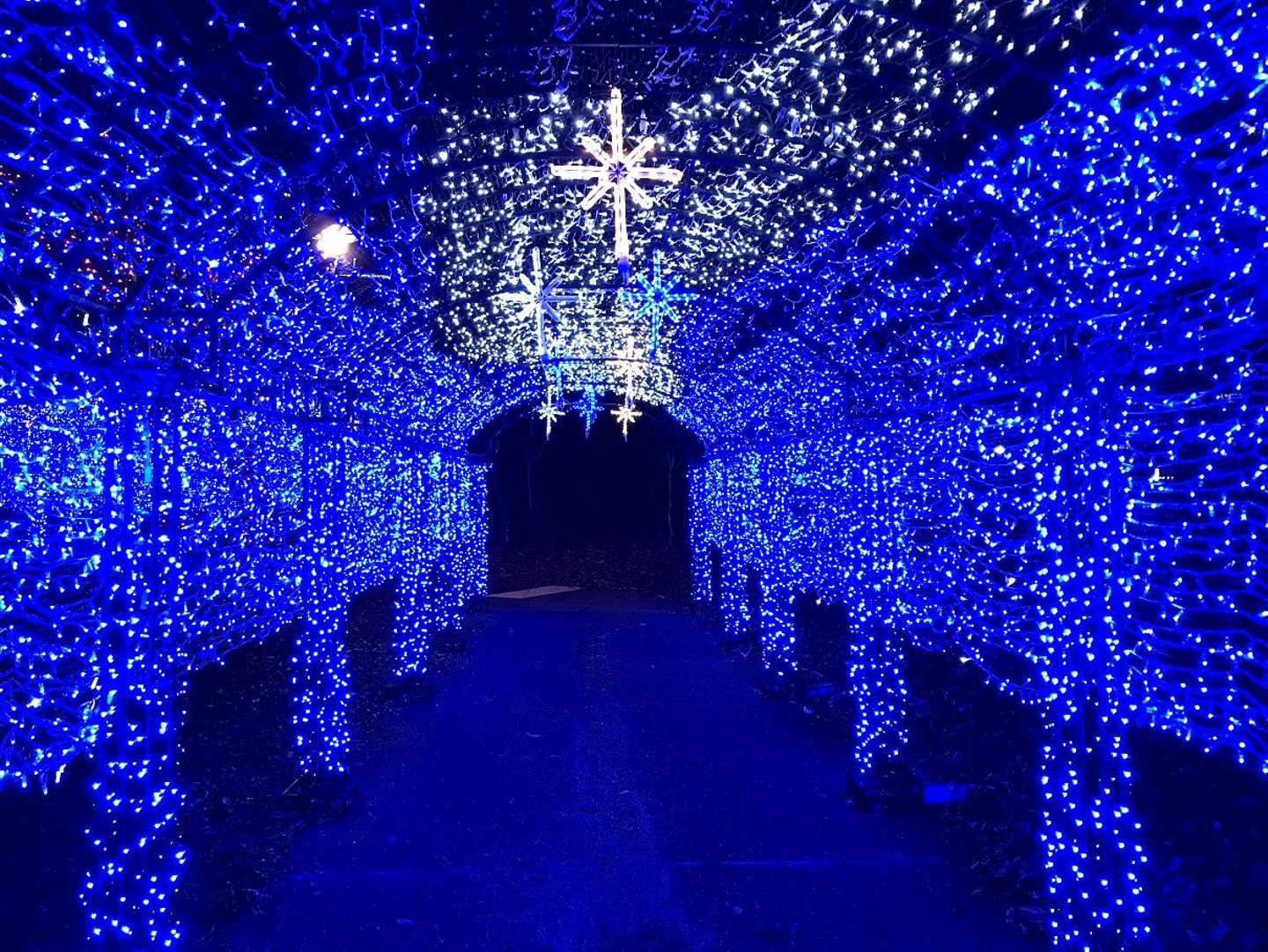 青い光のトンネルは圧巻です!
