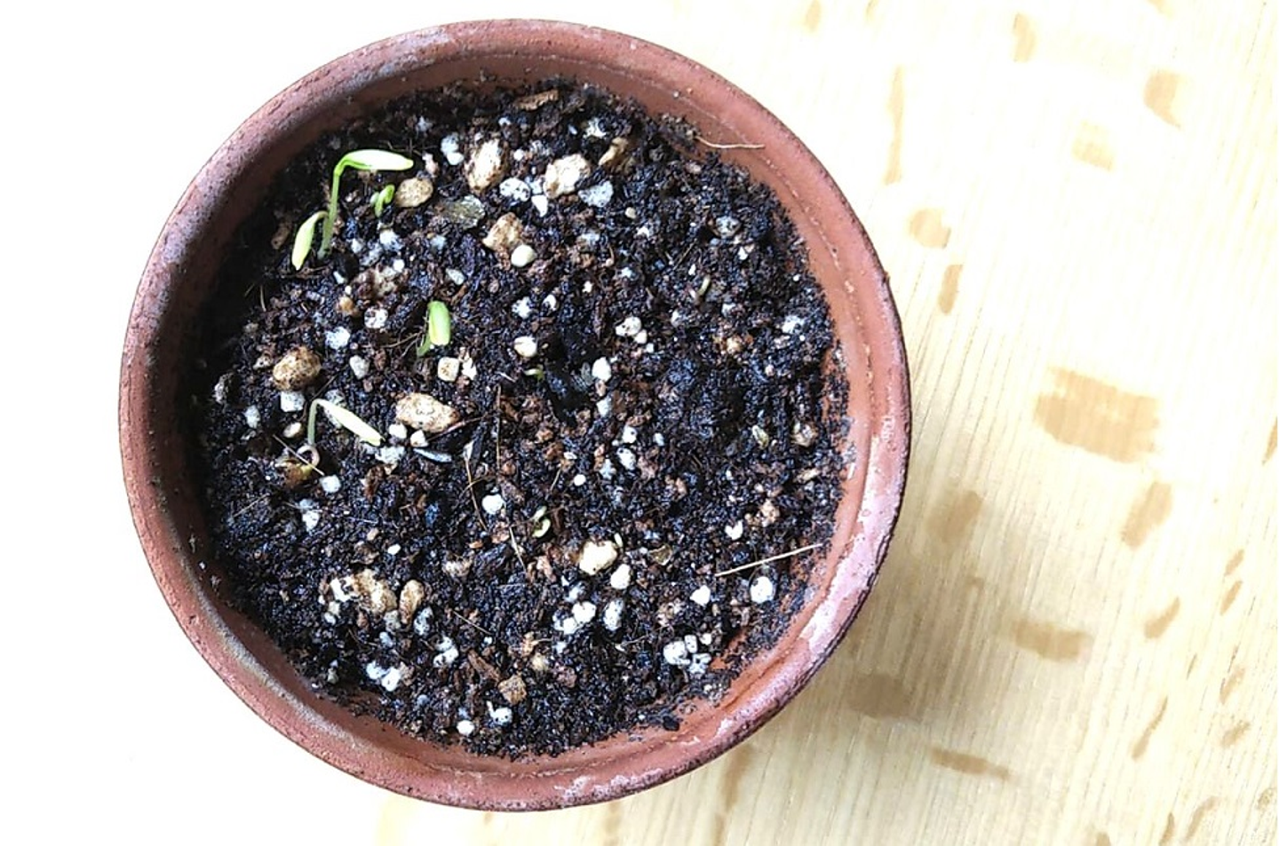 I様流 発芽率100%の秘訣は、「食卓の窓辺に置かれてしょっちゅう目出しを点検されるプレッシャーがプラスに働いた」とのことです!笑