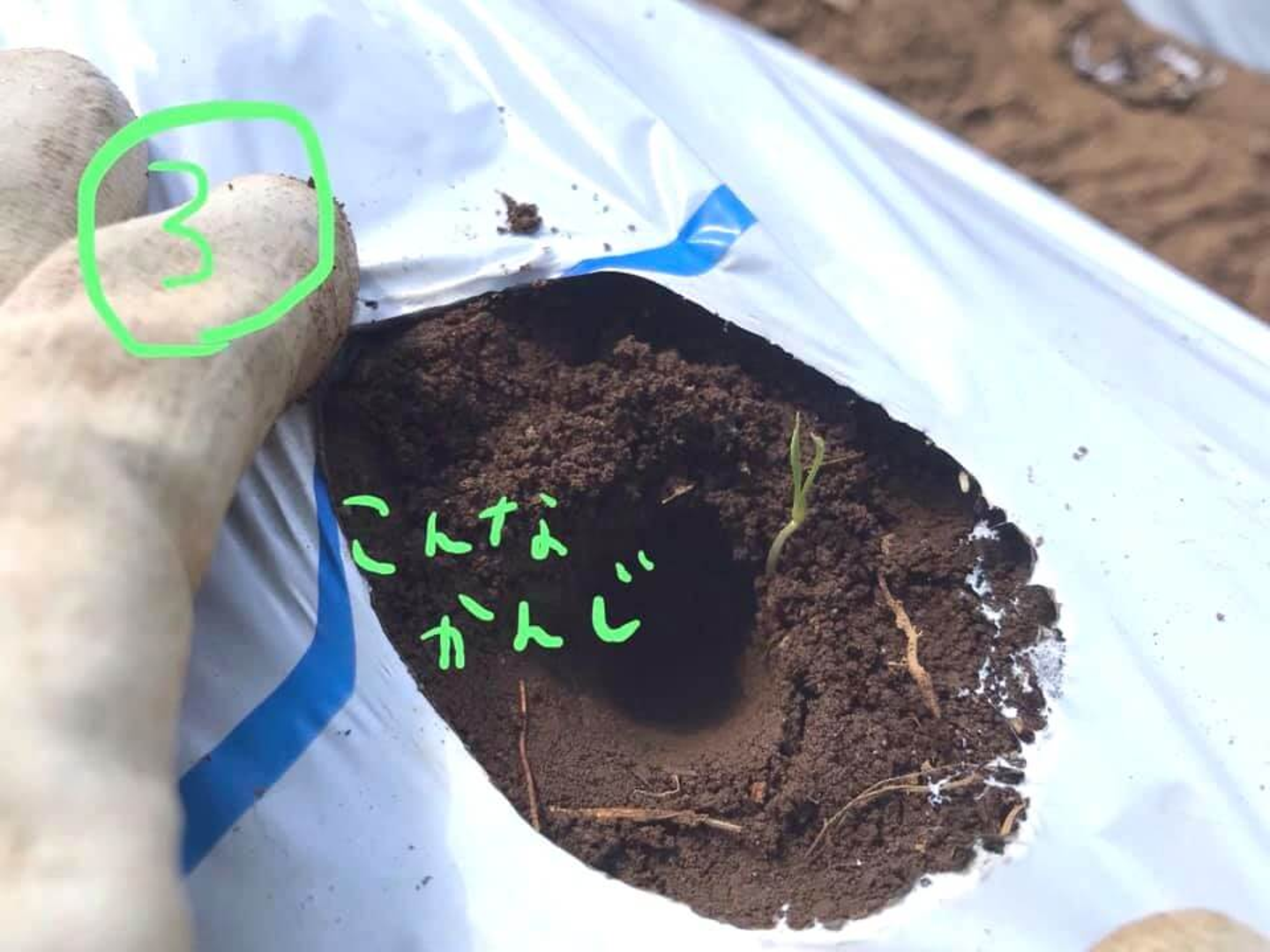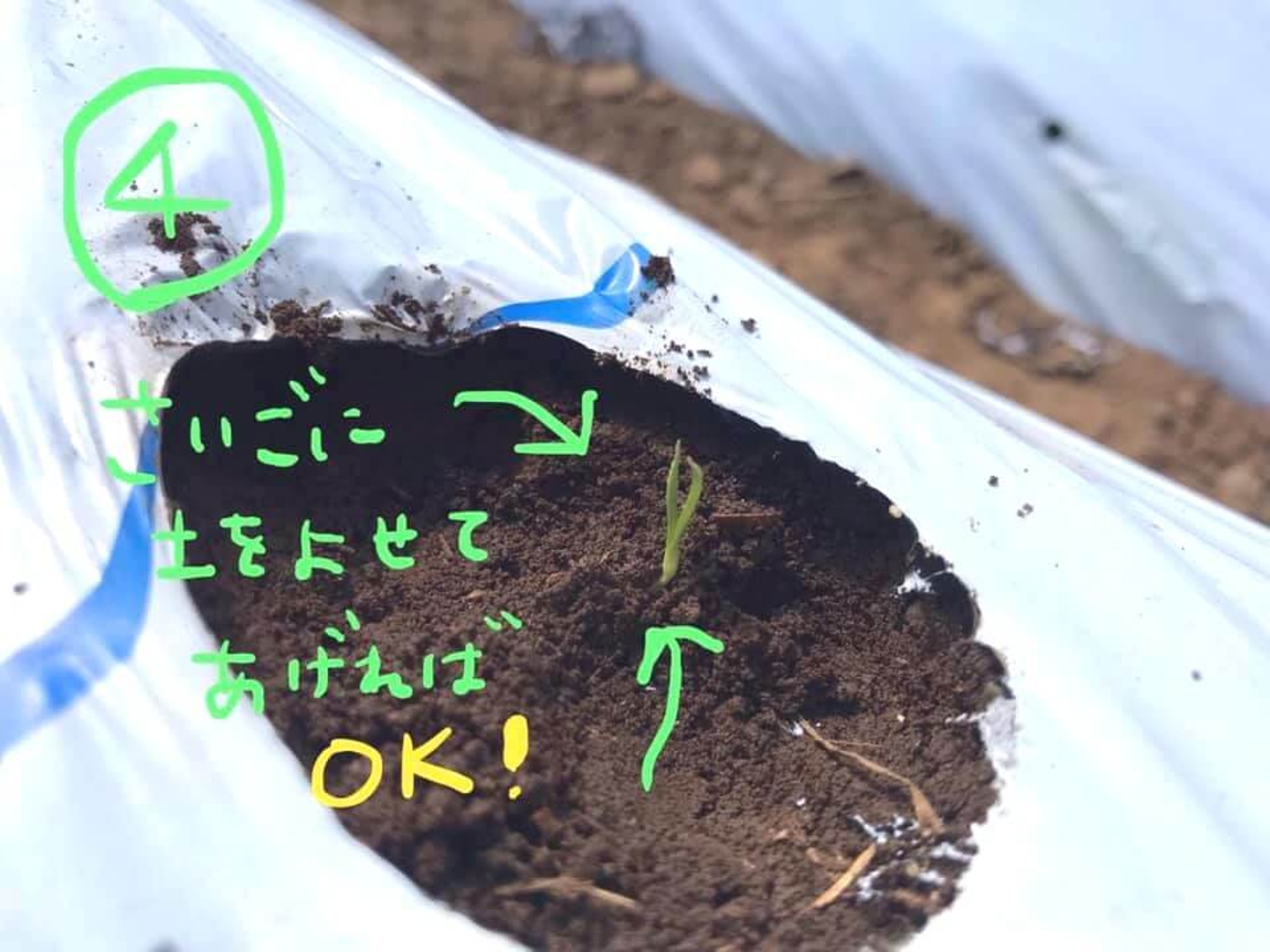芽の先だけが出ている状態です。ここまで埋めてしまっていいんですね!