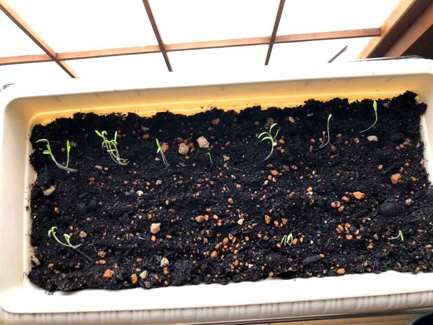 ひょろひょろっと伸びている芽 (これはこれでなんだか可愛いですが 笑)