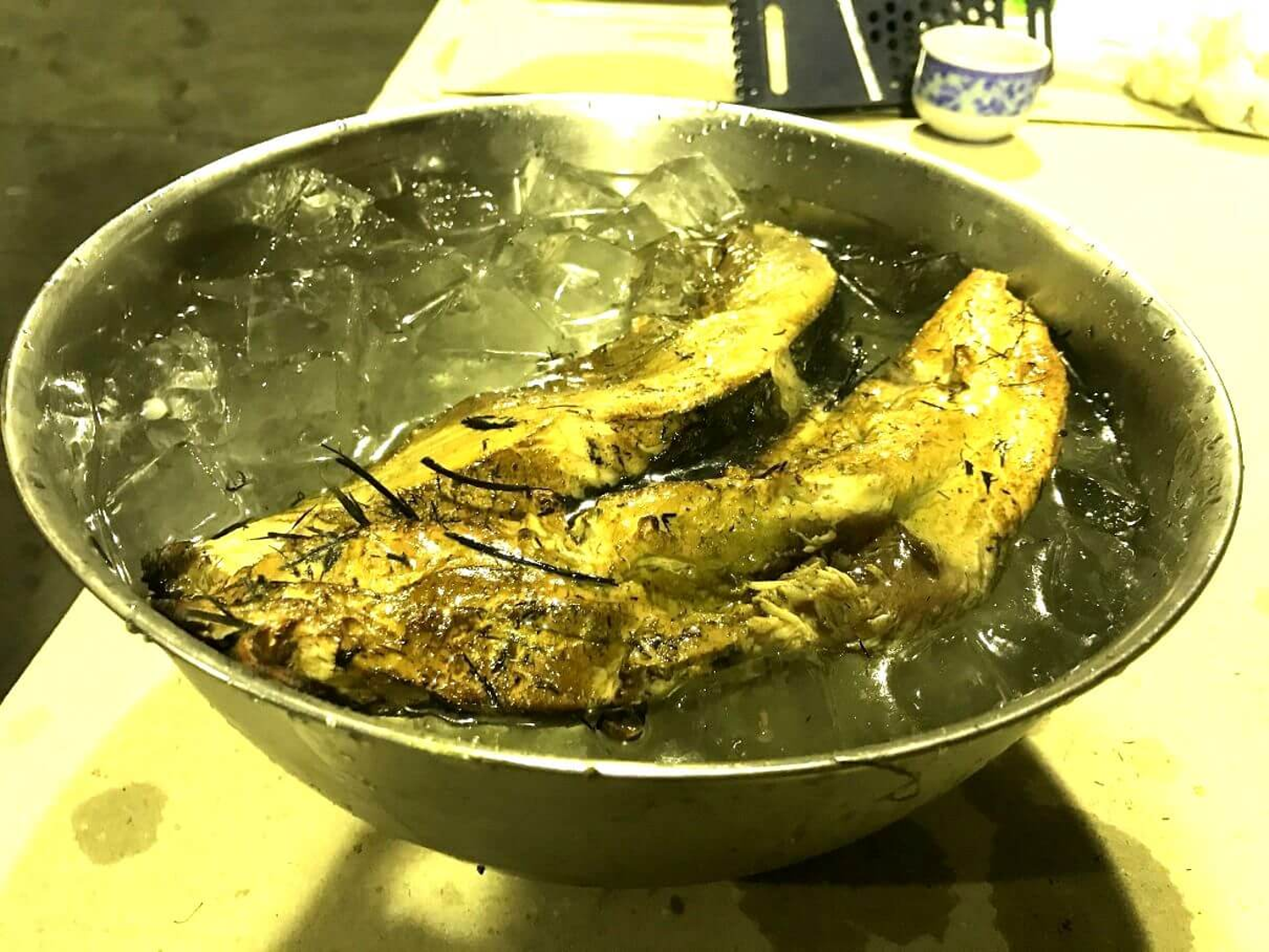 火が入り過ぎないように氷水を用意します