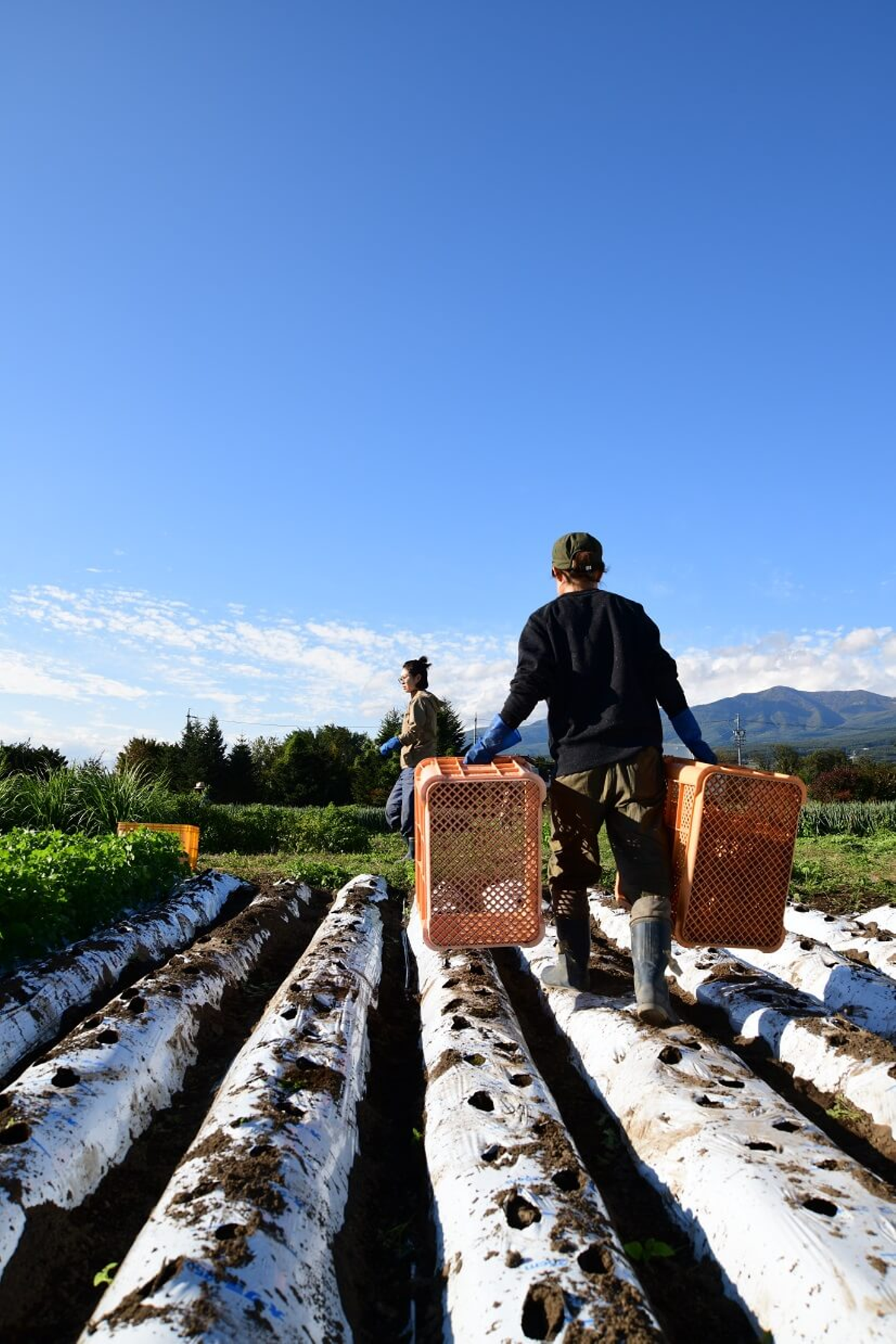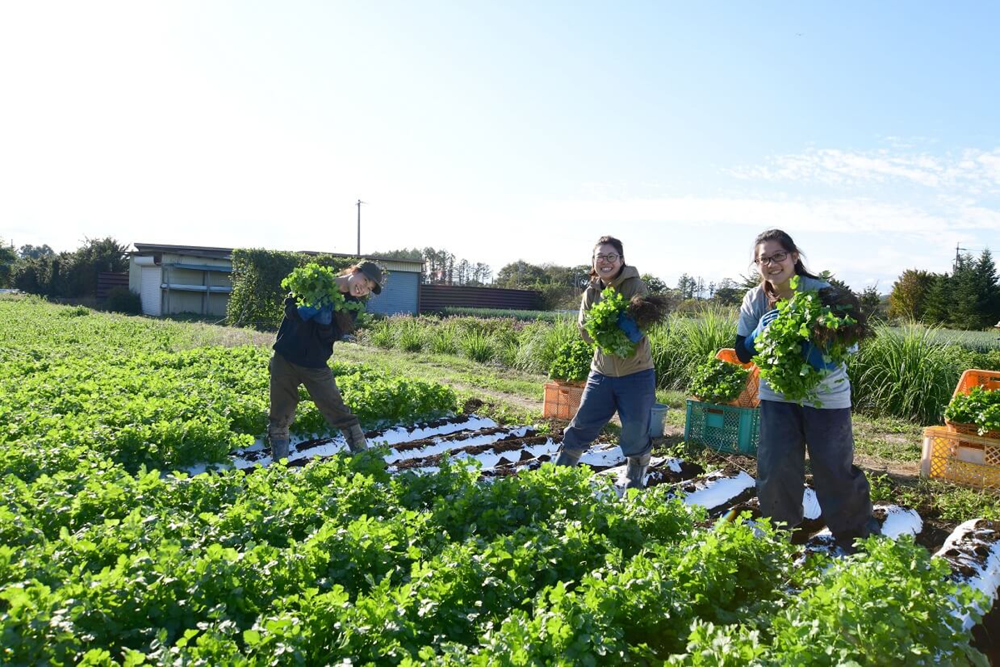 晴れ渡る青空のもと、この日は荒井・まめちゃん・キウイさんで収穫を行ないました。