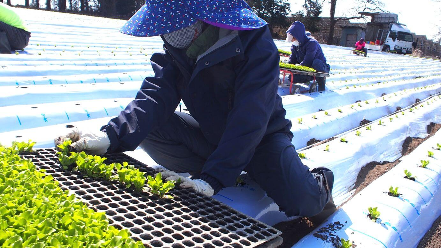 先週より収穫がスタートしたレタス班ですが、定植作業も順調に進んでおります。